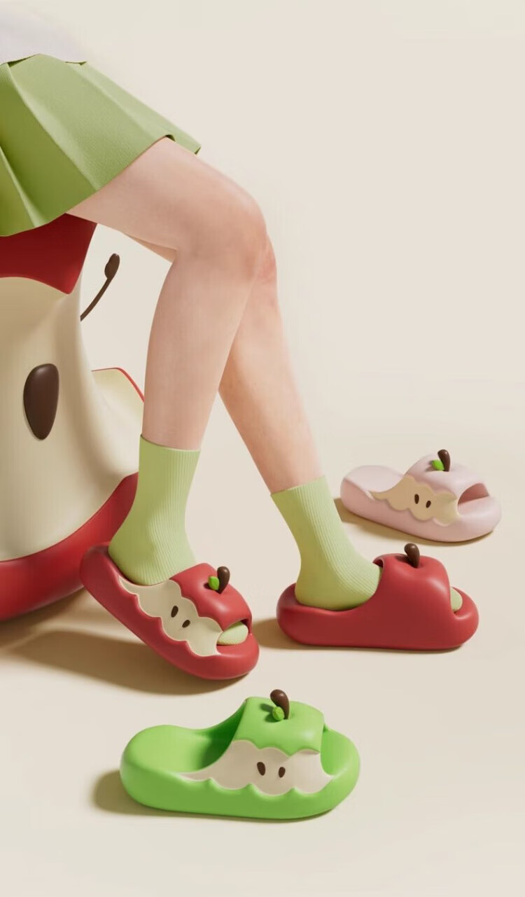 Pingxiao Internet celebrity Apple EVA slippers for women students summer outer wear thick-soled cartoon cute and comfortable home sandals and slippers Yuanyang Apple -EVA high elastic rubber plastic 36