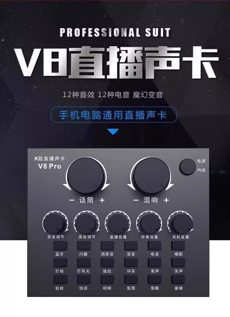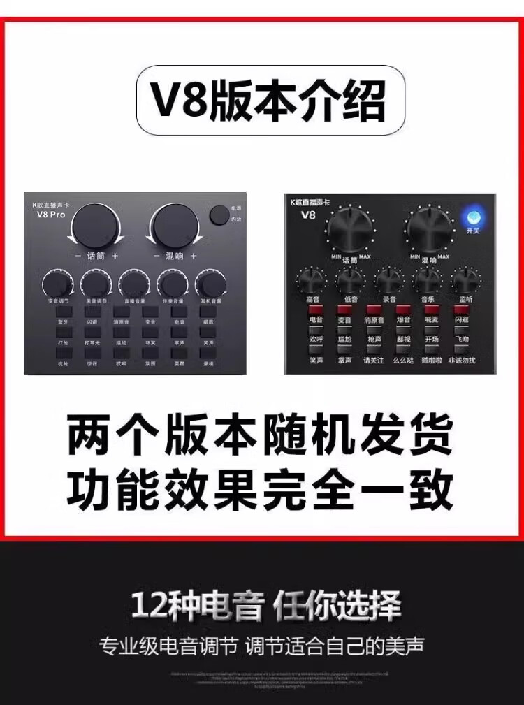 2025 New V8 Sound Card Set ASIO High-Performance Driver Recording Anchor Equipment Mobile Phone Kuaishou Douyin Singing Microphone Full Set K Song Shout Microphone Outdoor V8 Sound Card + Handheld E300 Microphone Set Recommended