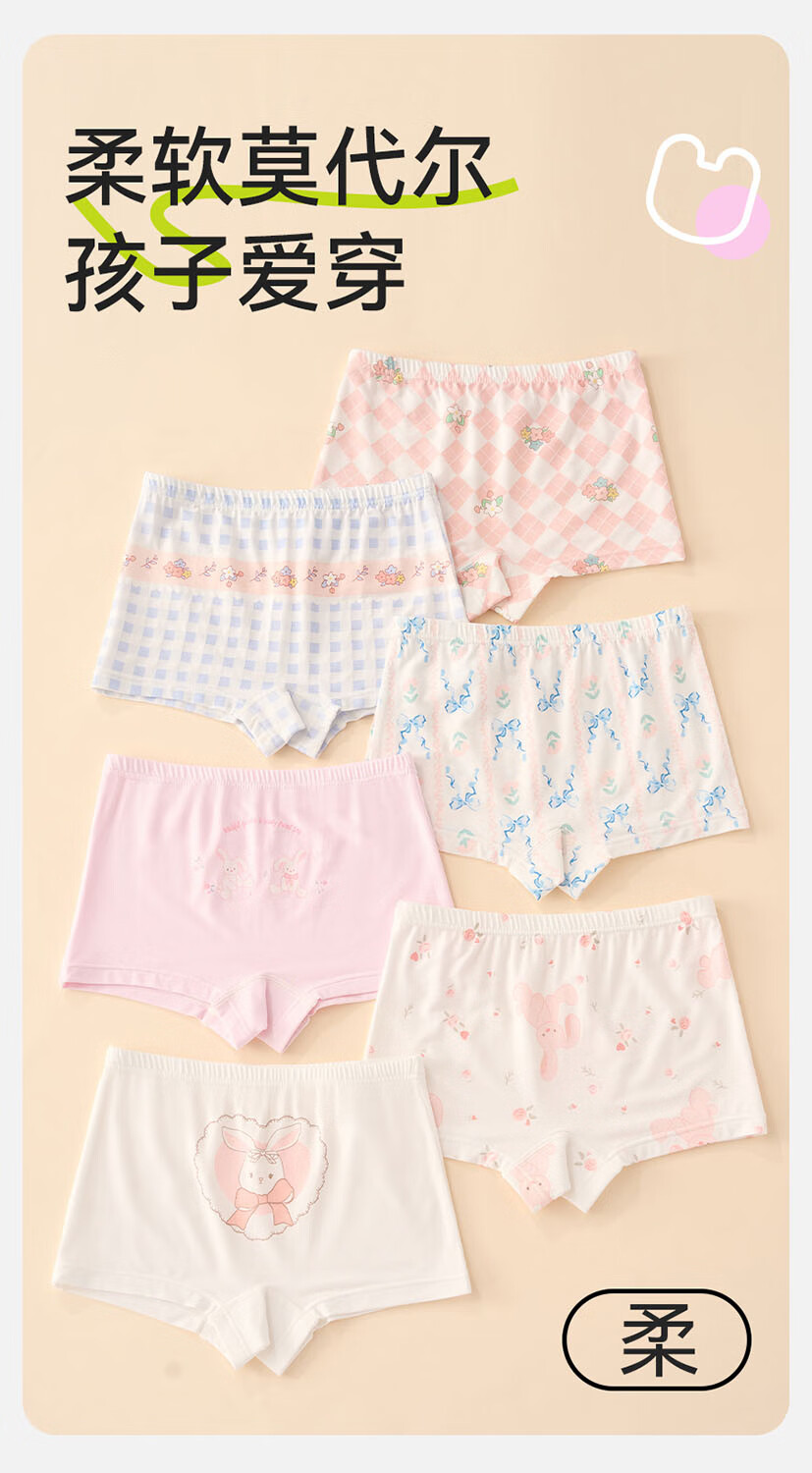 Mianqi Bear children's underwear girls clearance modal boxer briefs girls baby cotton boxer briefs women do not touch the butt 6 pieces MN205 special clearance benefits 4 pieces 130 - height 125-140cm weight 45-55 Jin Jin is equal to 0.5 kg