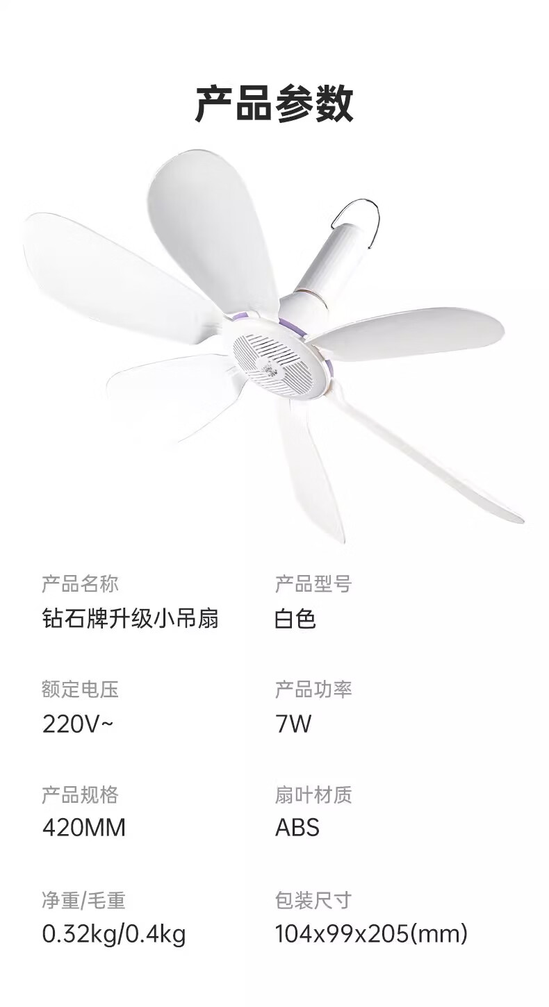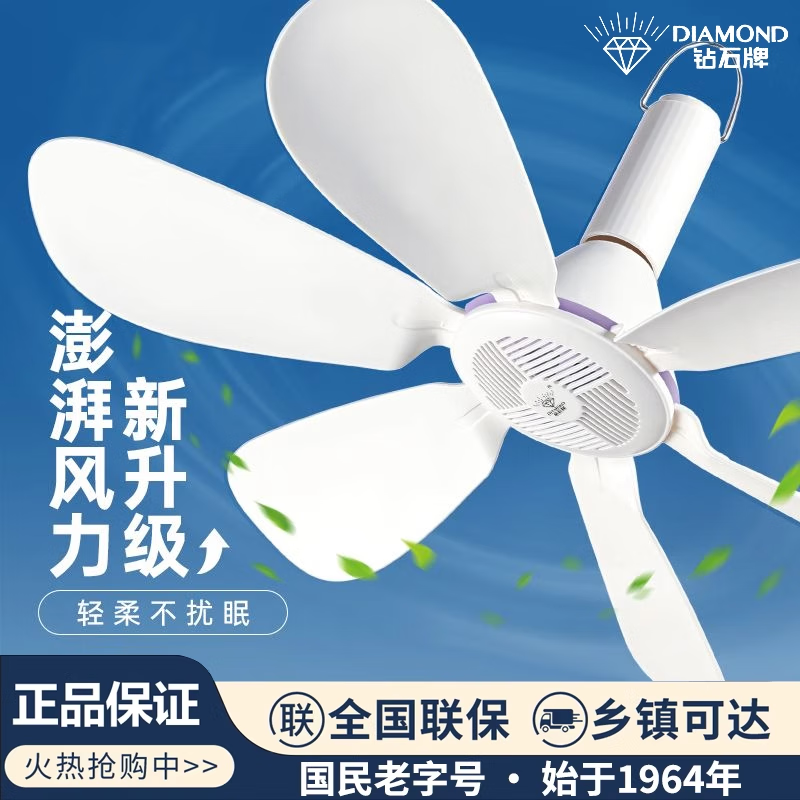 Diamond brand small ceiling fan small mini breeze dormitory student mosquito net bed electric fan home high wind remote control convenient six-blade simple baby fan silent basic breeze ceiling fan special price