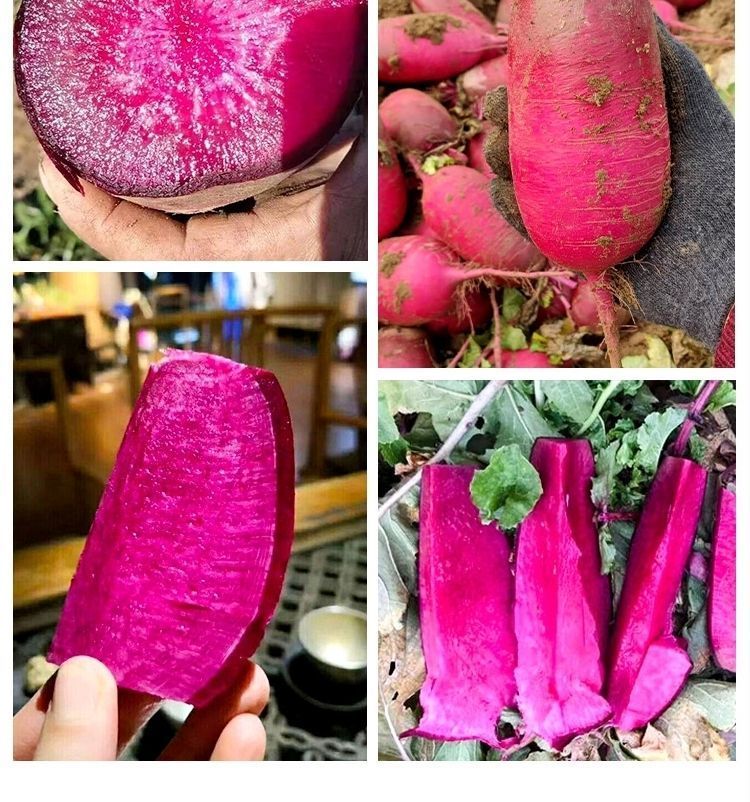 Qili Pineapple Fruit Radish Seeds Purple Beauty Radish Seeds Red Heart Red Skin Farm Fresh Vegetable Seeds in Autumn and Winter Seasons Pineapple Fruit Radish Seeds 300 capsules/1 pack + fertilizer