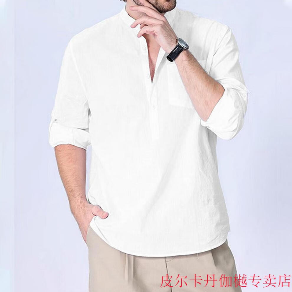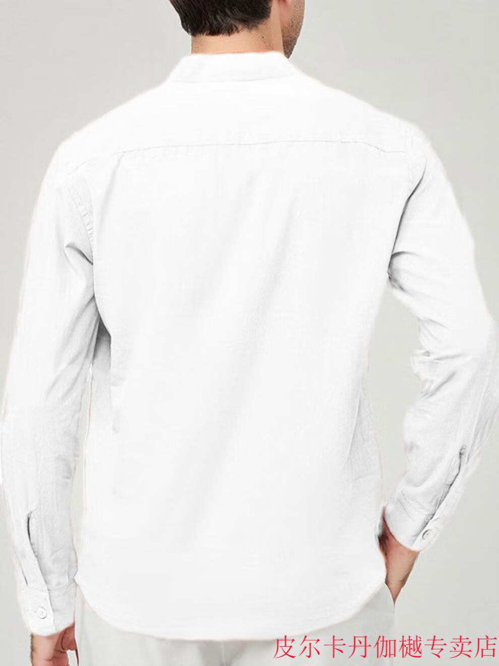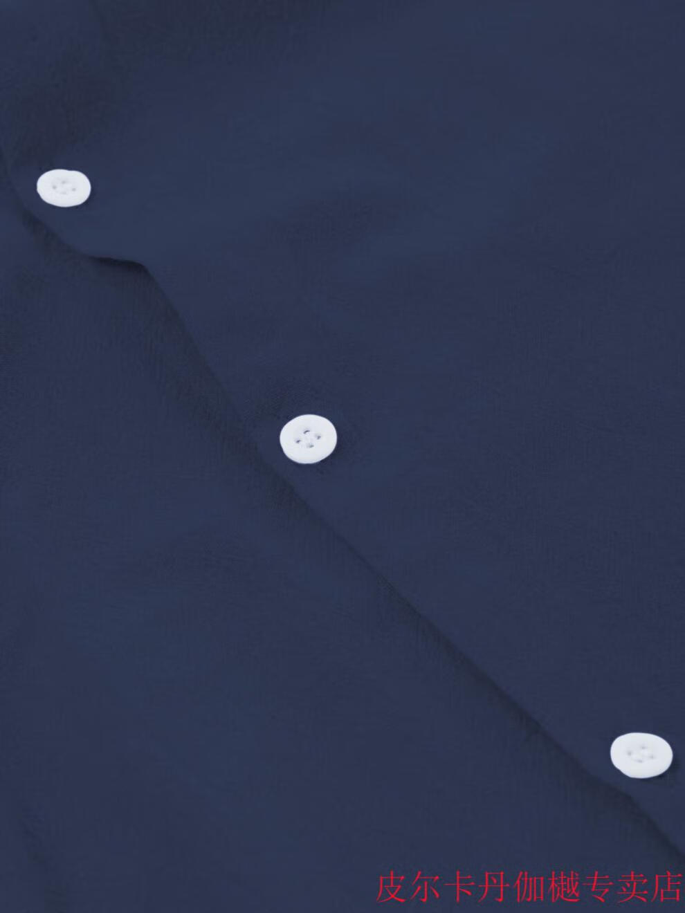 Pierre Cardin Spring and Summer New Henley Shirt Long Sleeve Men's Solid Color Cotton Beach Shirt Casual New Chinese Style Shirt Navy S