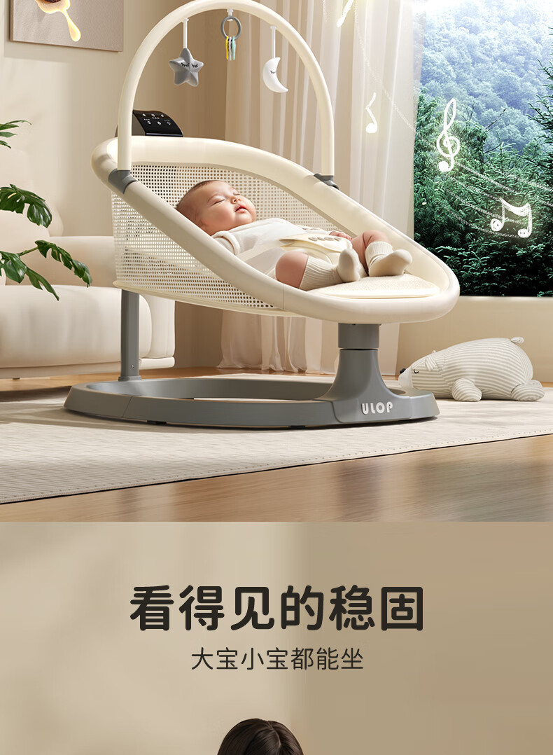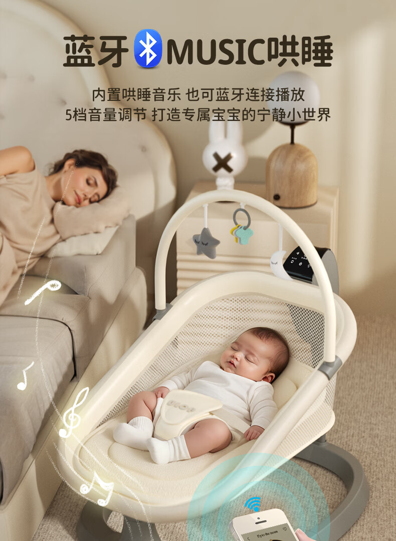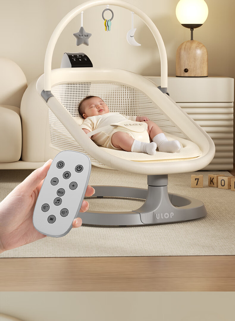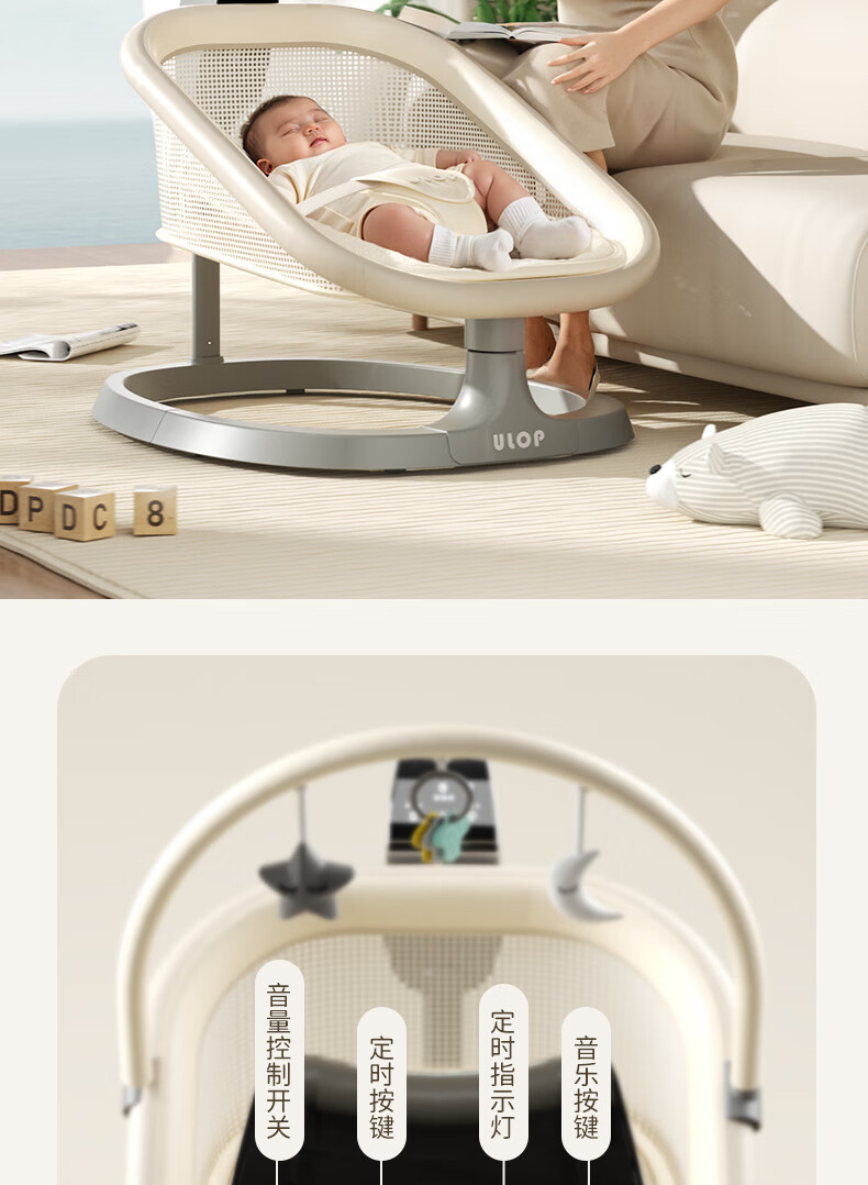 ULOP baby rocking chair to coax baby, baby electric rocking chair to coax baby to sleep, cradle bed, newborn full moon meeting gift, intelligent baby rocking chair to coax baby to sleep - dark gray, free mosquito net + Bluetooth + doll + sleeping pad + remote control