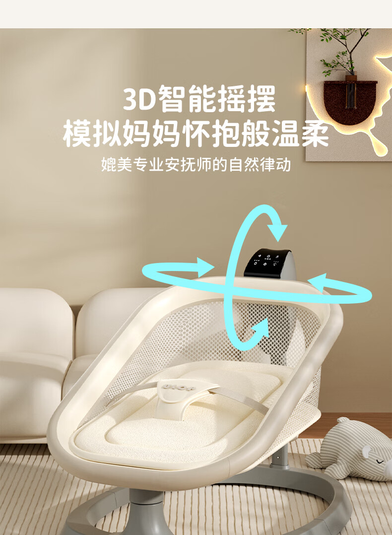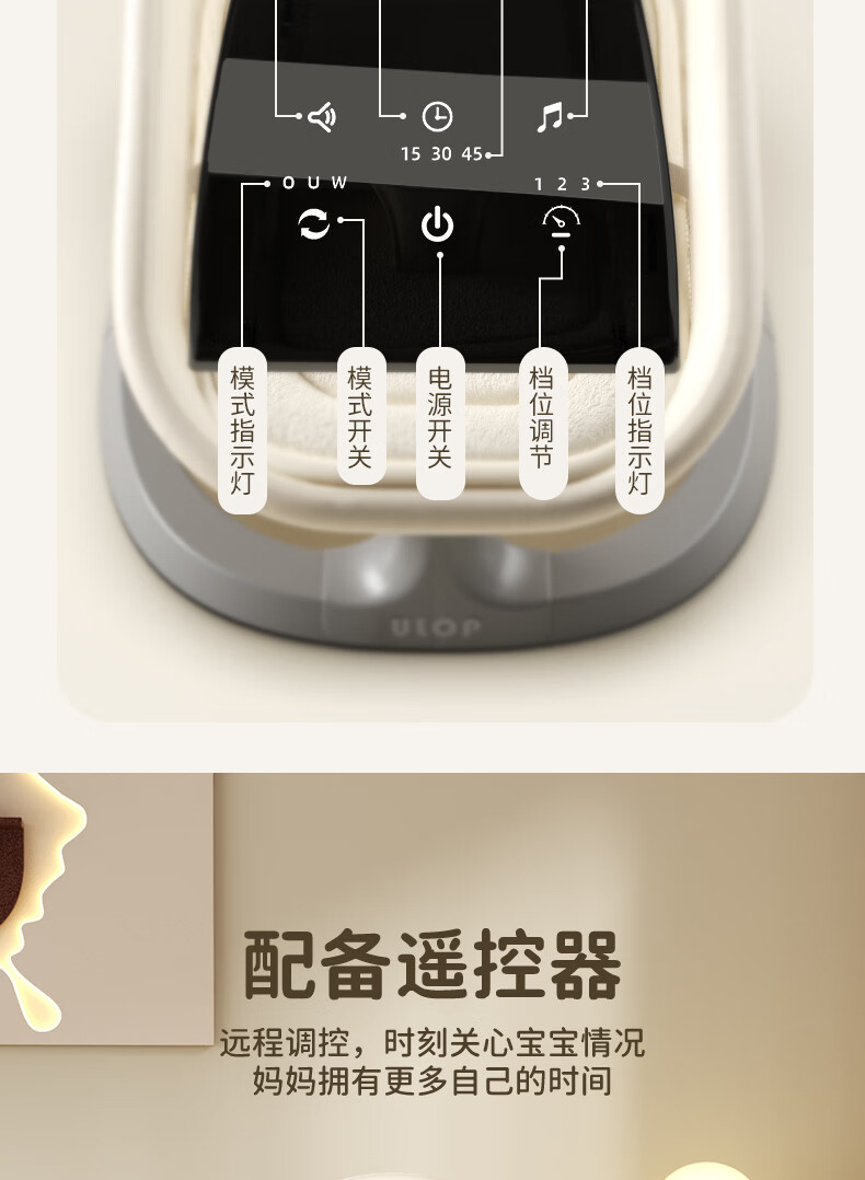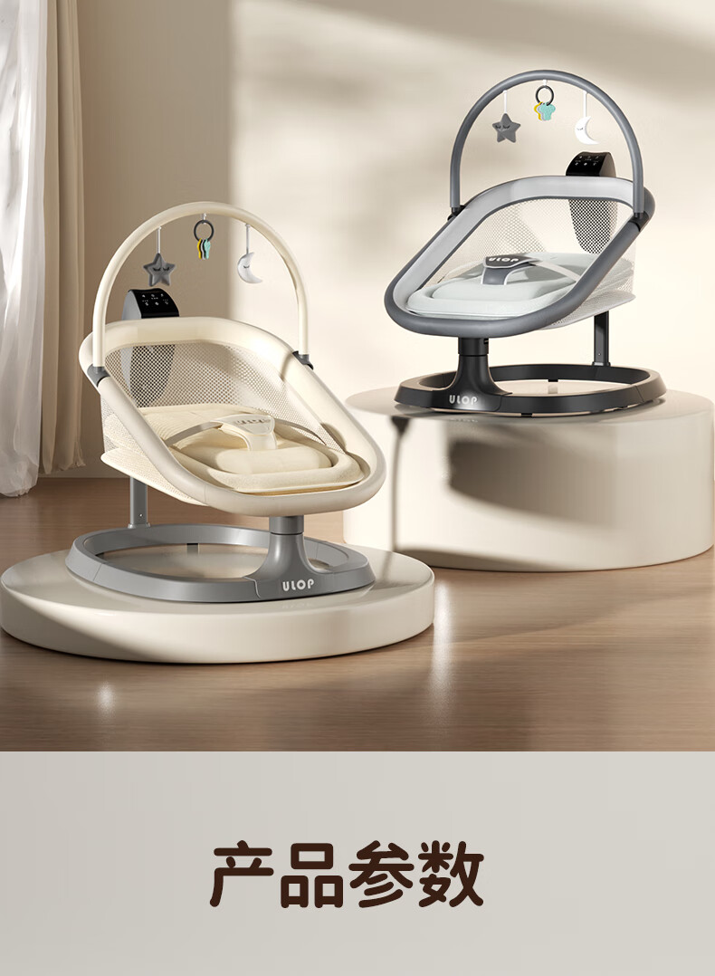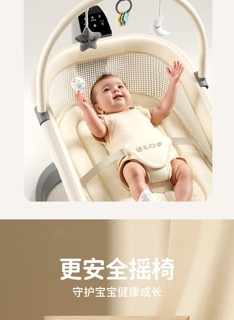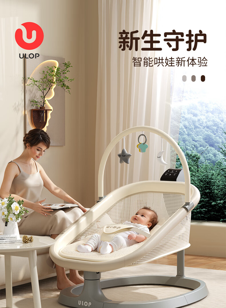 ULOP baby rocking chair to coax baby, baby electric rocking chair to coax baby to sleep, cradle bed, newborn full moon meeting gift, intelligent baby rocking chair to coax baby to sleep - dark gray, free mosquito net + Bluetooth + doll + sleeping pad + remote control