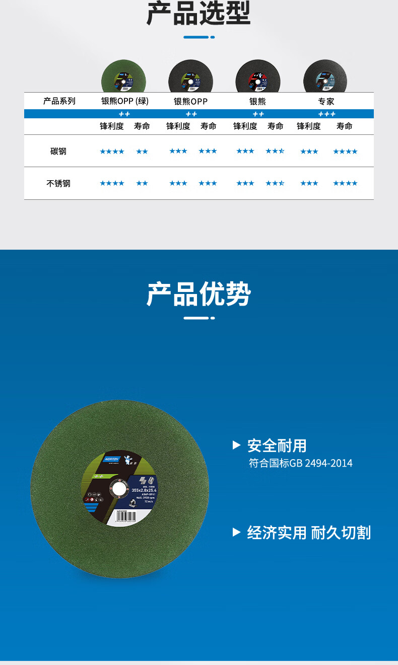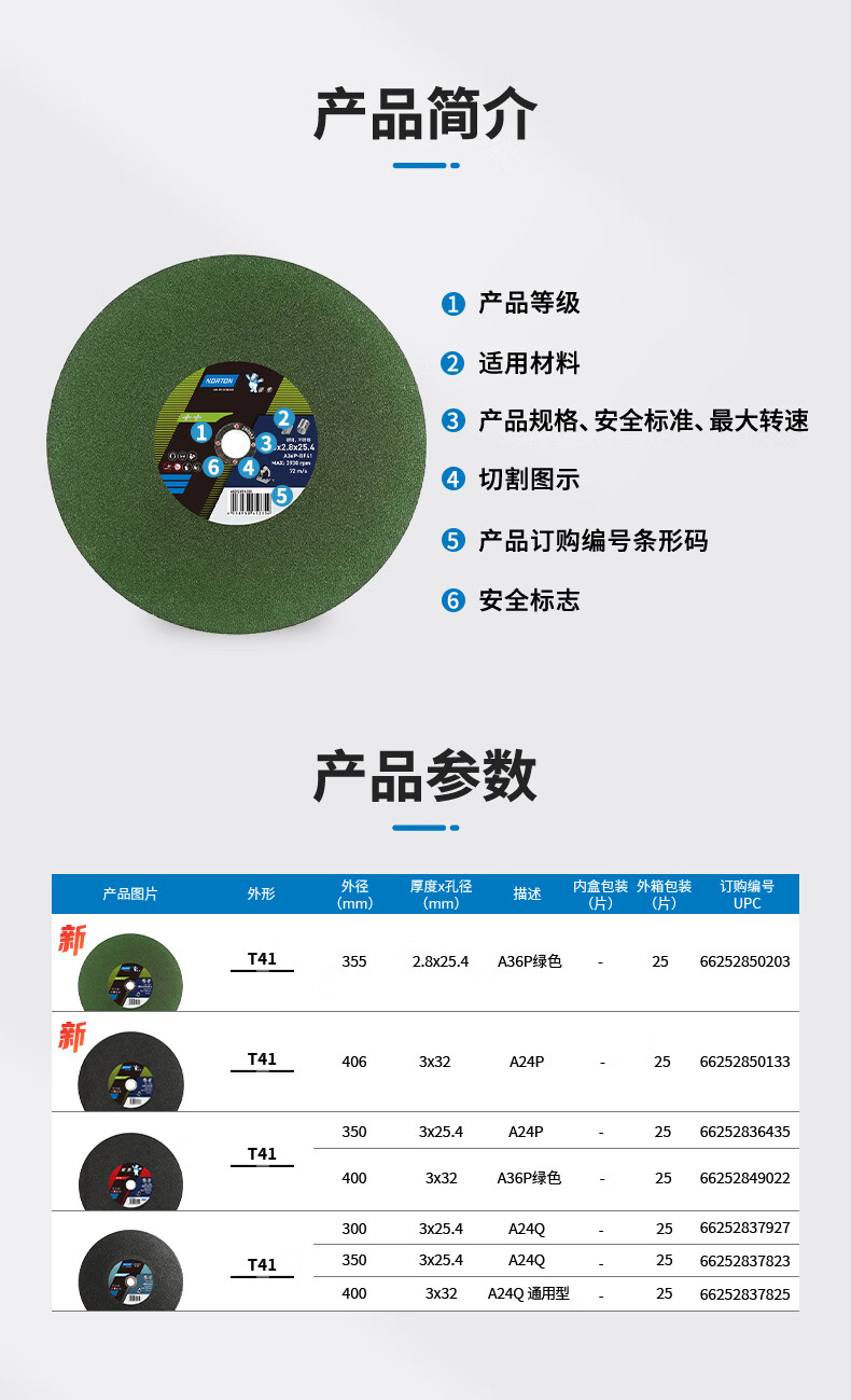 NORTON Saint-Gobain Norton large cutting 400 cutting disc 350mm general metal stainless steel cutting machine grinding wheel sheet profile Silver Bear large slice 400x3x32 green sheet