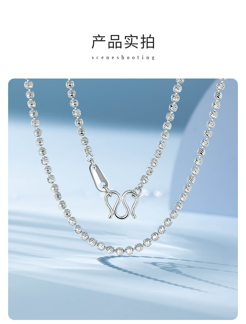 China Jewelry PT950 mini bouncy bead necklace platinum plain clavicle chain as a birthday gift for men, about 9.4g