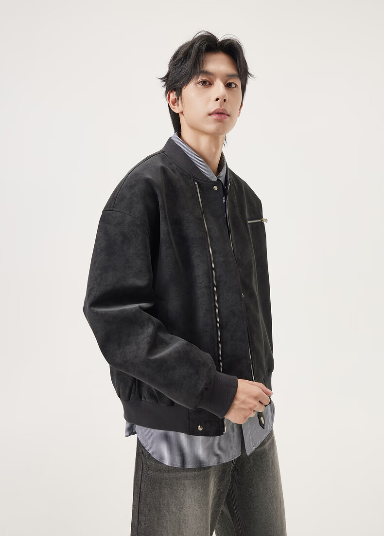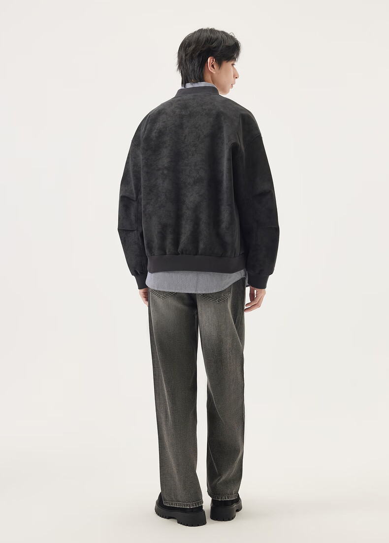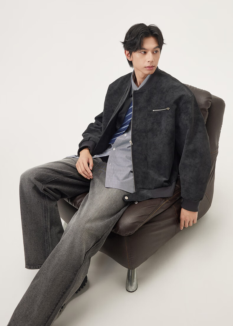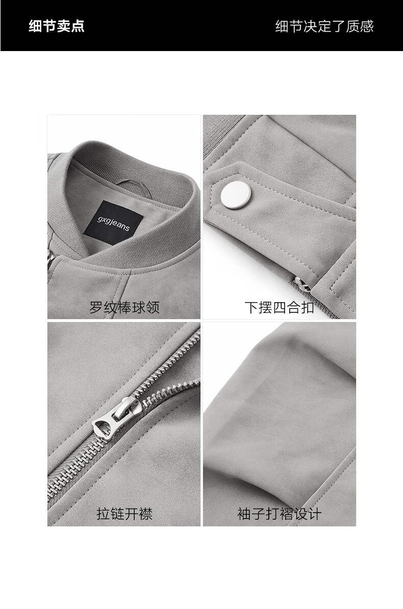 Gxg.jeans Men's PU Leather Fashion Casual Loose Baseball Collar Bomber Jacket 25th Autumn New Product Black Gray L (175)