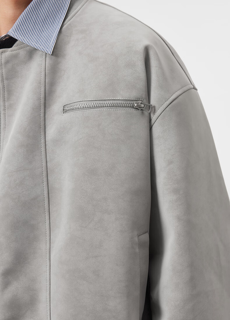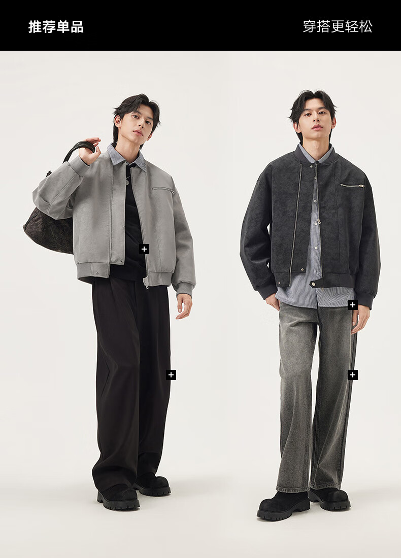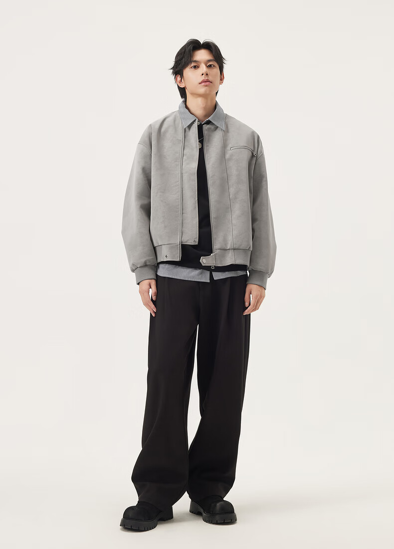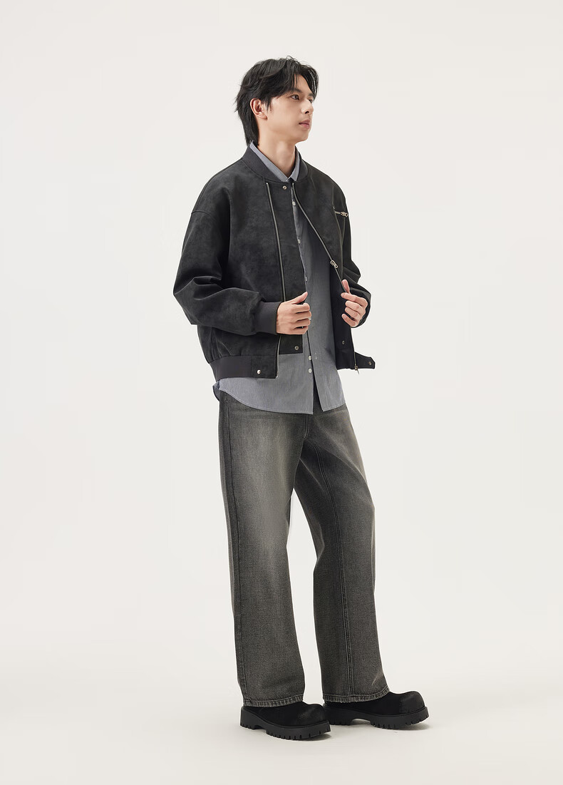 Gxg.jeans Men's PU Leather Fashion Casual Loose Baseball Collar Bomber Jacket 25th Autumn New Product Black Gray L (175)