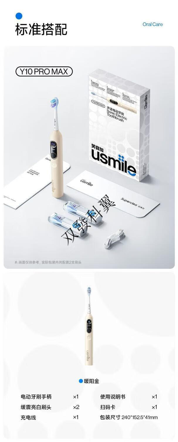 Usmile Smile Plus Electric Toothbrush Sonic Soft Bristle Gift Box Gift Plaque Detection Reminder Y10PROMAX Y10PROMAX Warm Yang Gold Intelligent Plaque Reminder