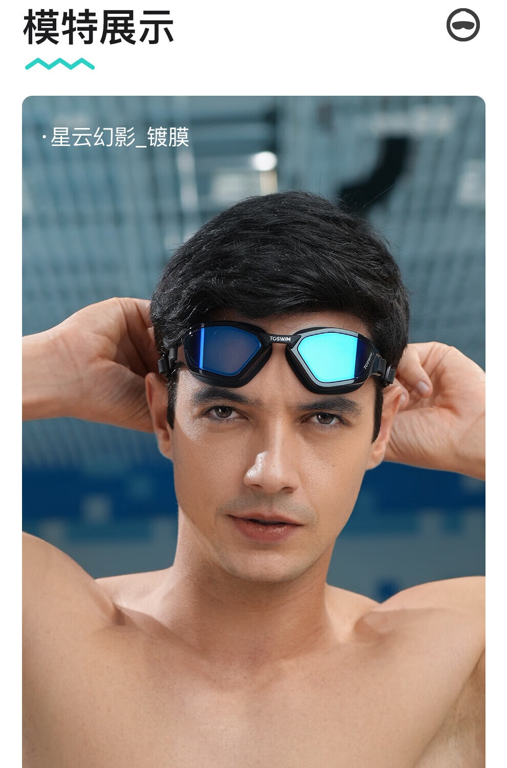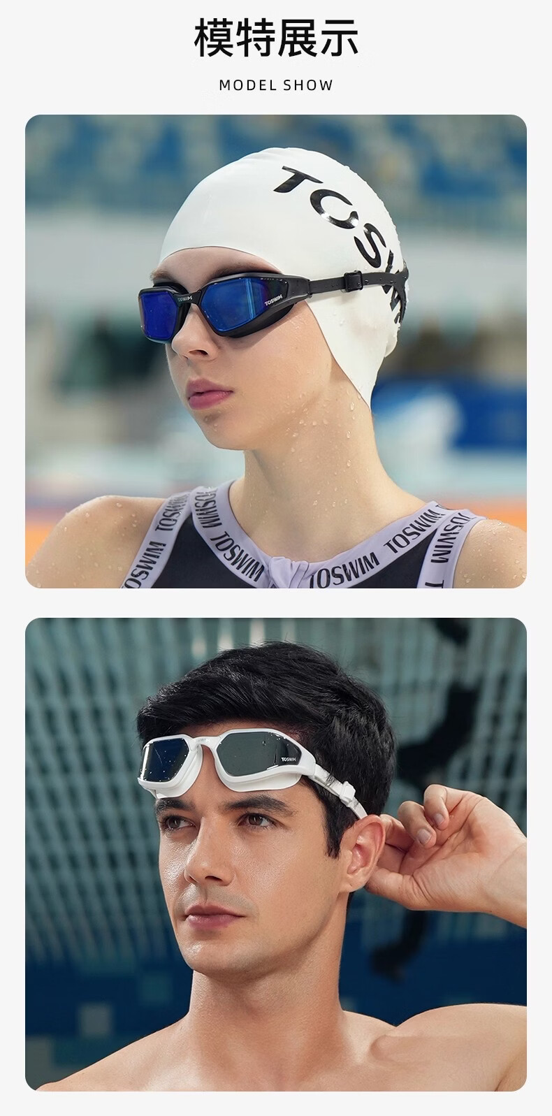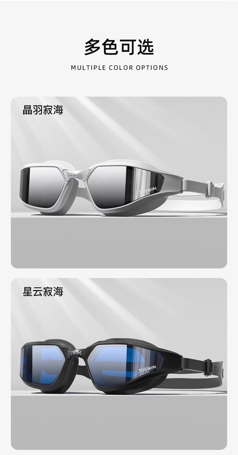 TOSWIM adult swimming goggles, HD anti-fog, waterproof, comfortable swimming goggles, unisex, Jingyu Jiehai, coated flat style, no degree