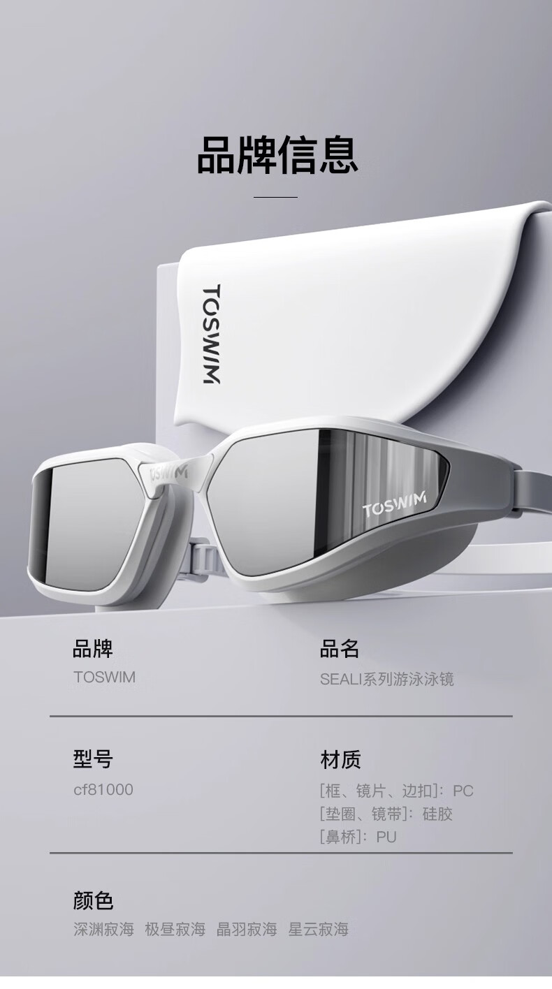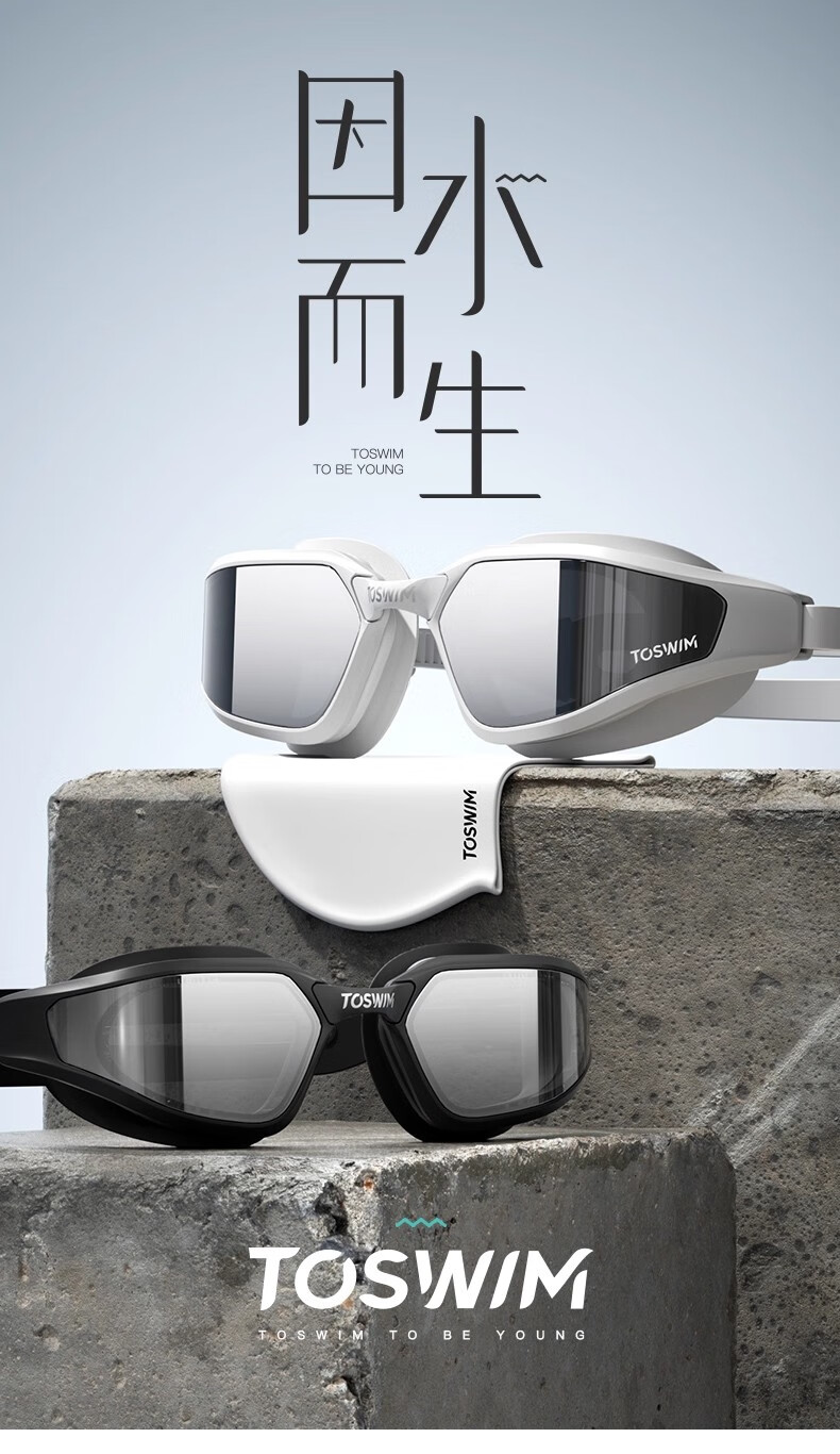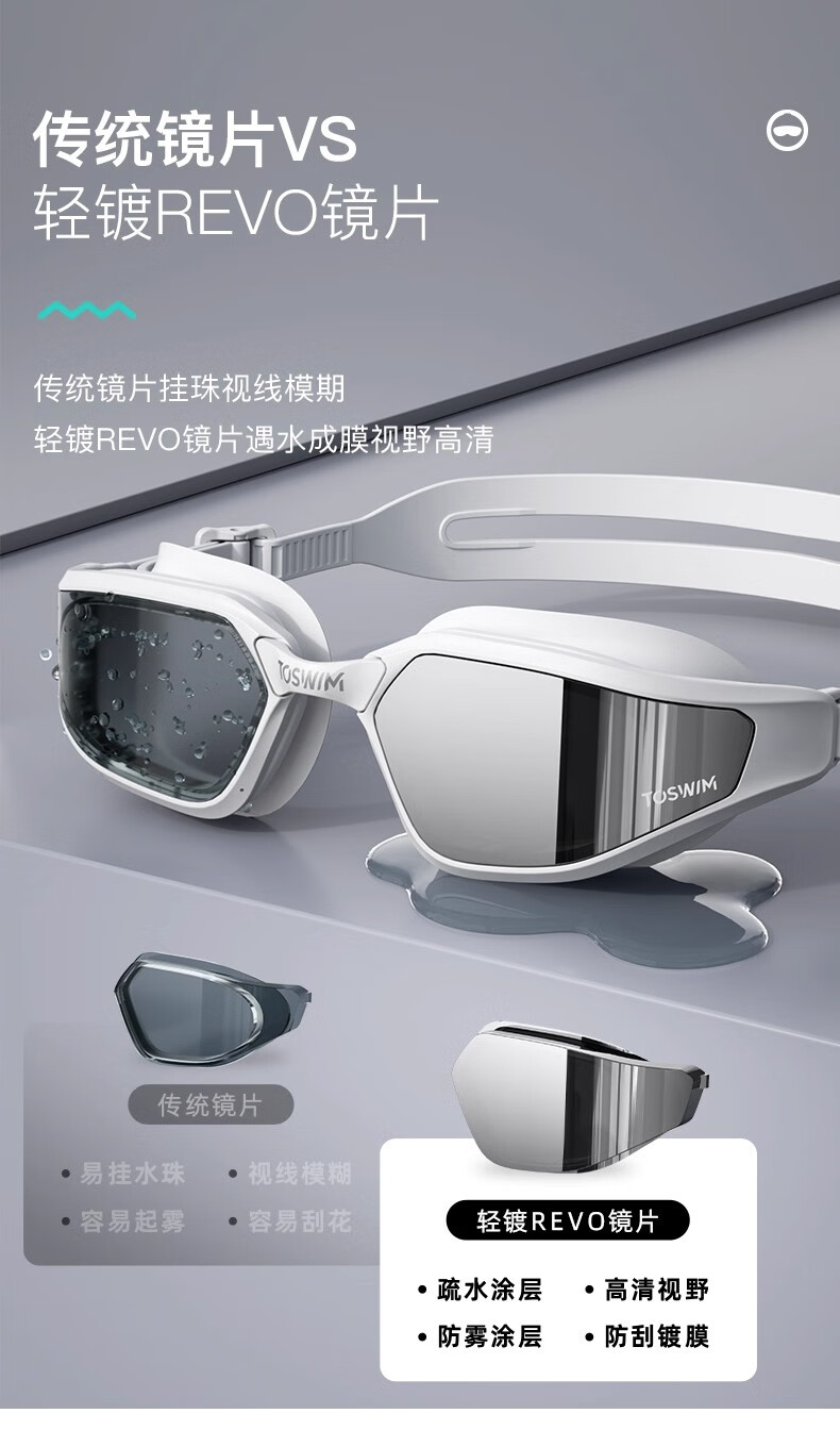 TOSWIM adult swimming goggles, HD anti-fog, waterproof, comfortable swimming goggles, unisex, Jingyu Jiehai, coated flat style, no degree
