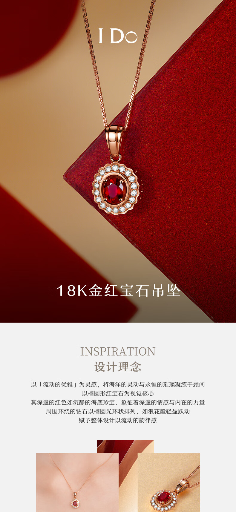 I Do 18K gold inlaid ruby diamond necklace light luxury high-end jewelry pendant Chinese Valentine's Day gift