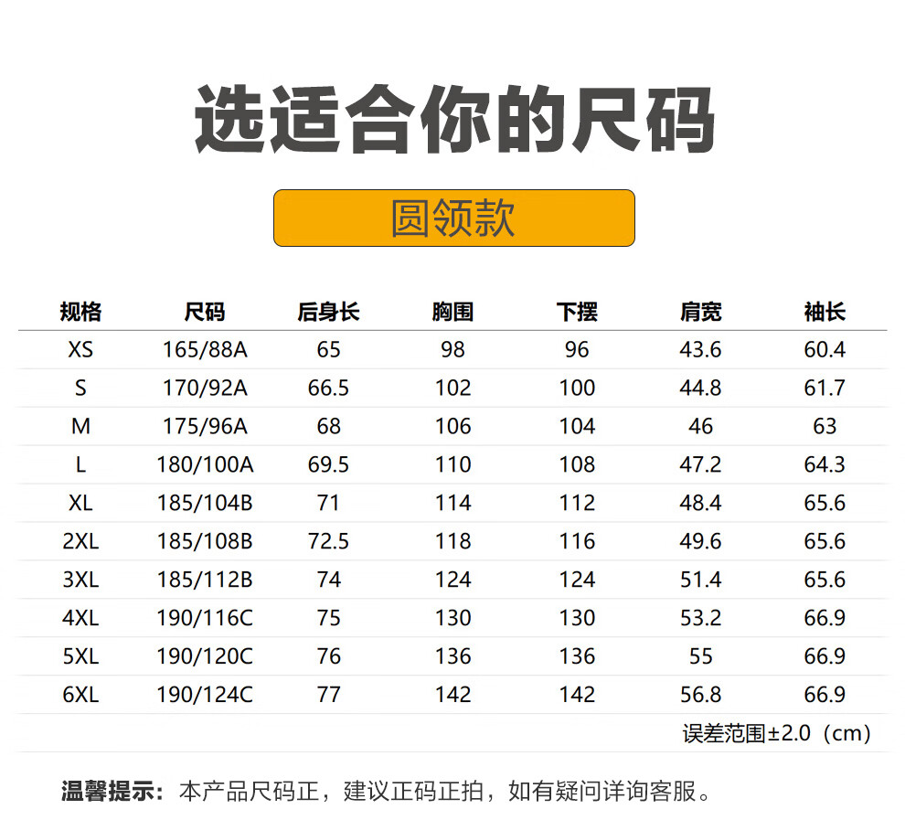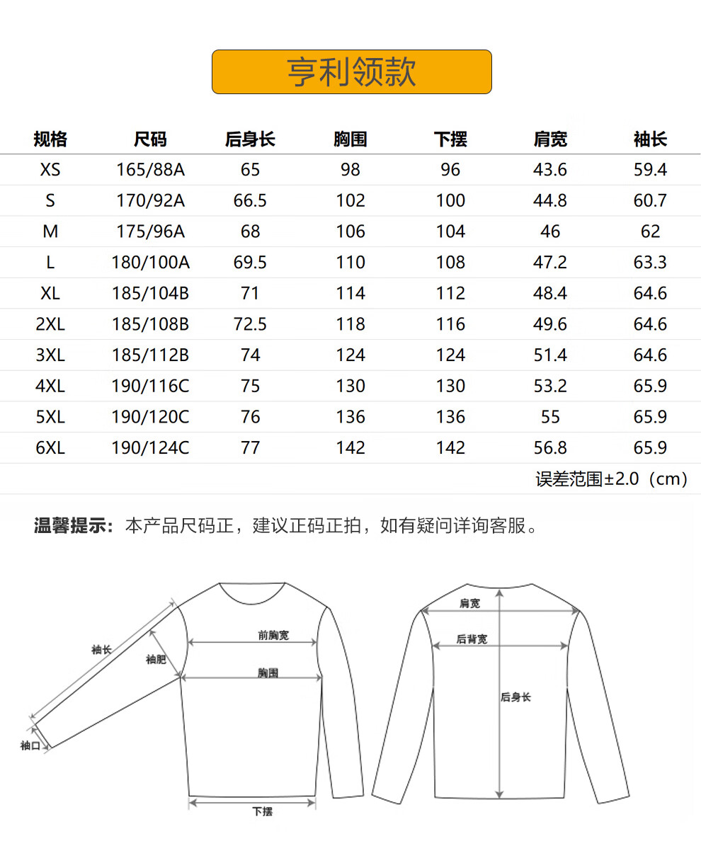 China (cm) 165 / 88-90 170 / 96-98 175 / 108-110 180 / 118-122 185 / 126-130