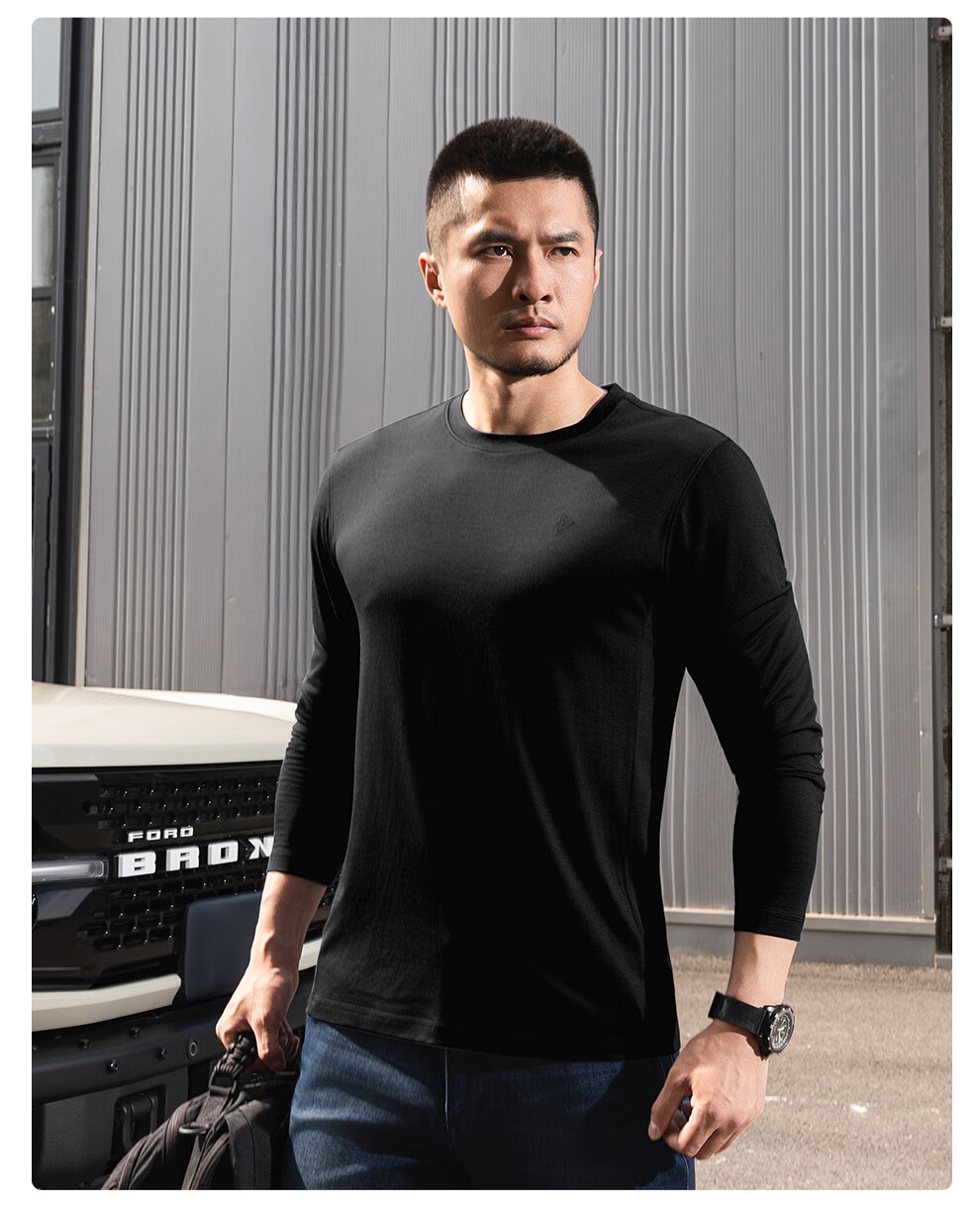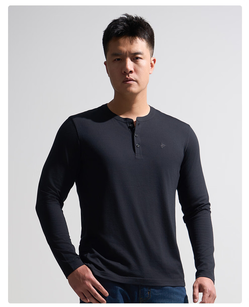 Dragon Teeth II Secret Wind Feather PRO Merino Wool Long Sleeve T-shirt Autumn Warm Outdoor Round Neck/Henry Neck Commuting Extreme Night Black (Round Neck) M 175/96A 141-159Jin Jin is equal to 0.5 kg
