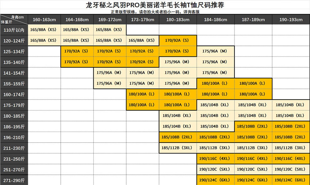 China (cm) 160-165/84-86 165-170 / 88-90 167-172 / 92-96 168-173 / 98-102 170-176 / 106-110