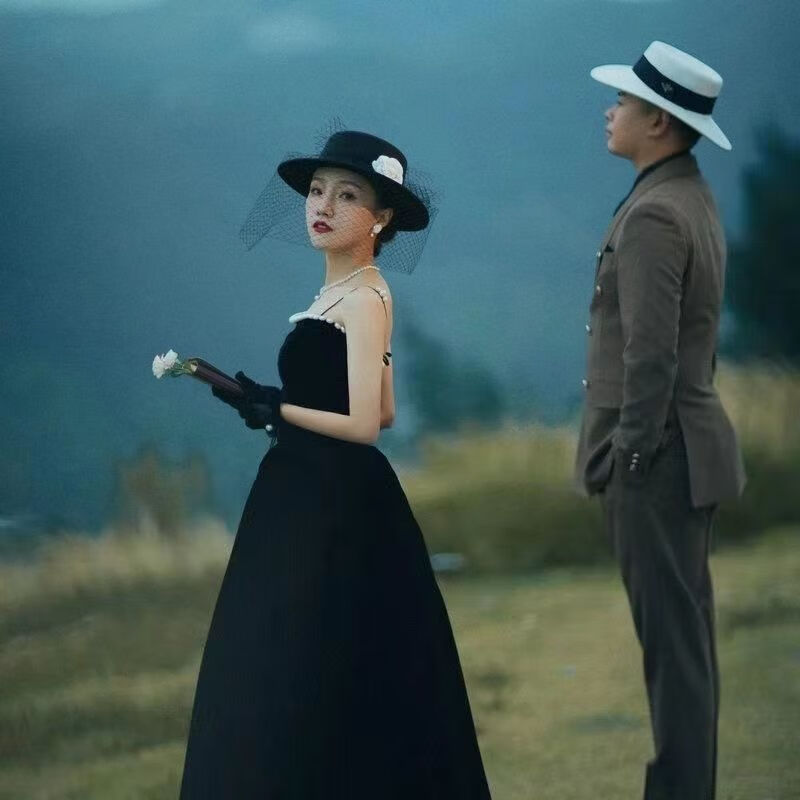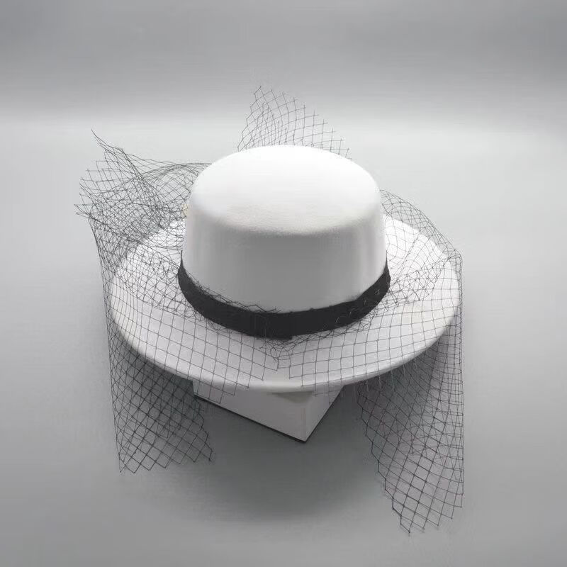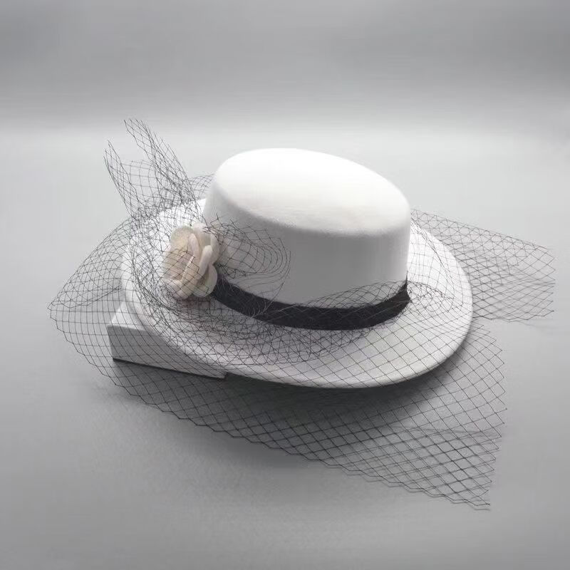 Gisela Hepburn style hat French flat top Hepburn style hat for women retro British court evening dress photo studio photo tour mesh-black adult 57cm