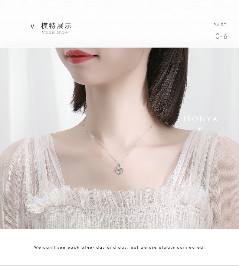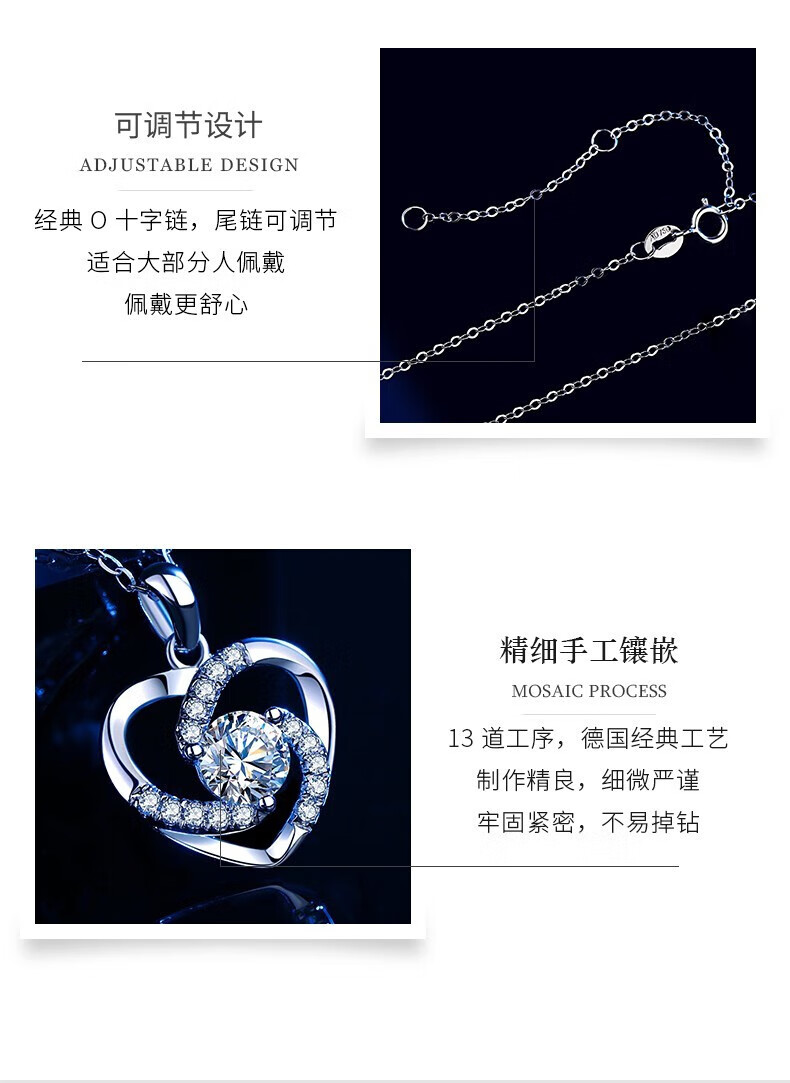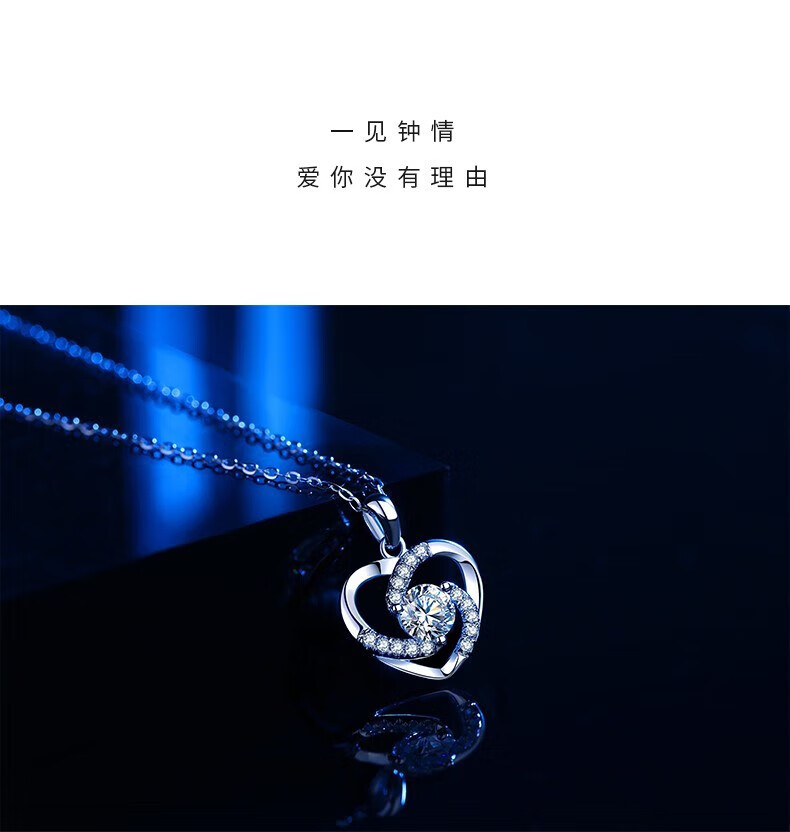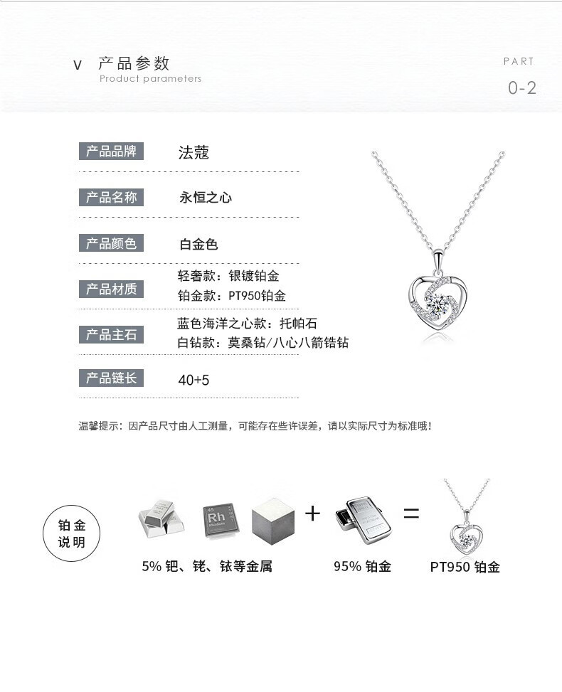 Faqiao Eternal Heart Platinum Necklace for Women PT950 Moissanite Platinum Chinese Valentine's Day Gift for Girlfriend Light Luxury Style - Inlaid with Ocean Heart Topaz
