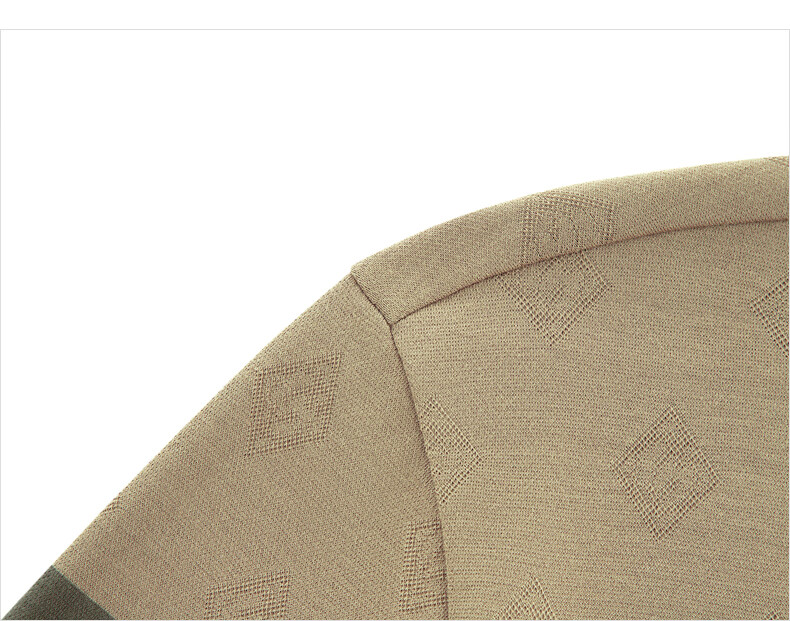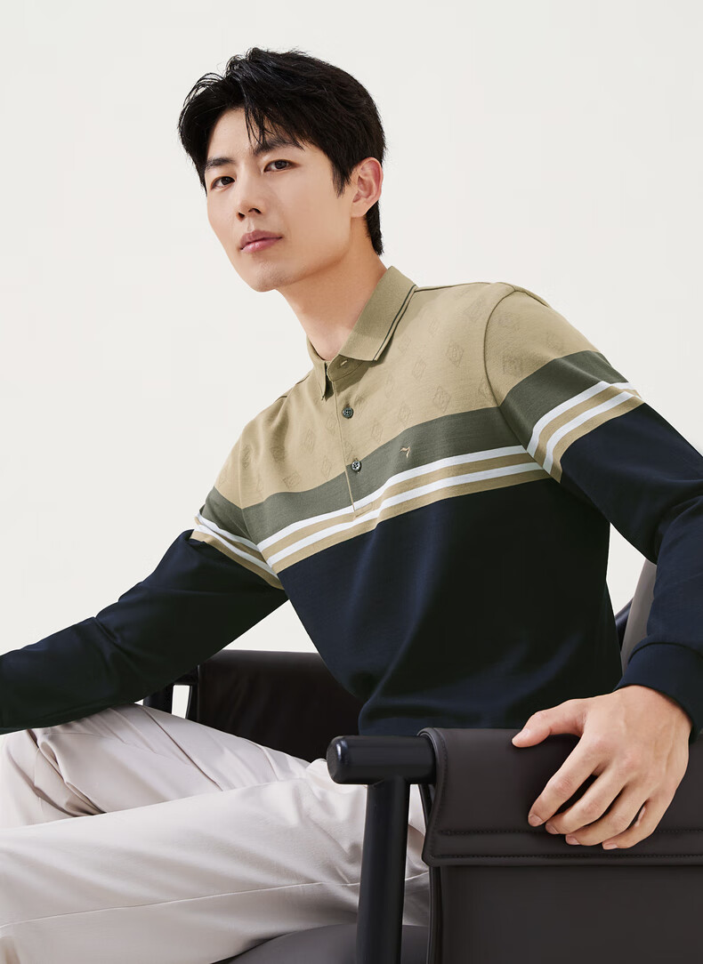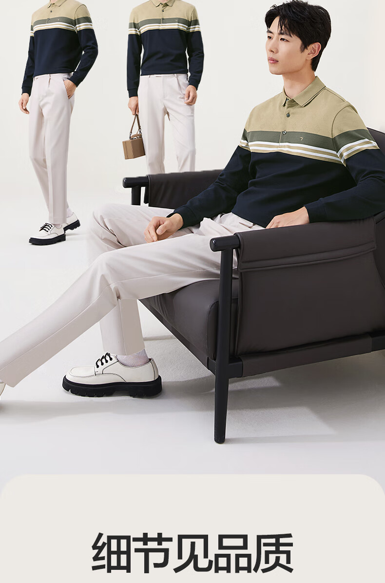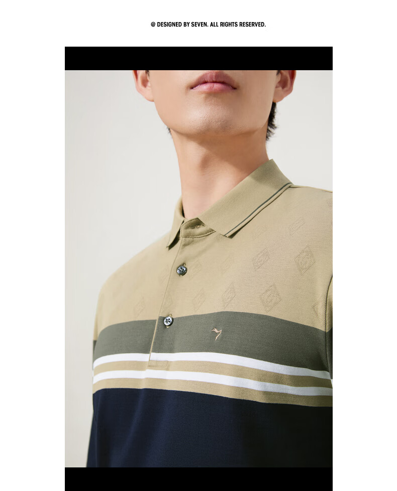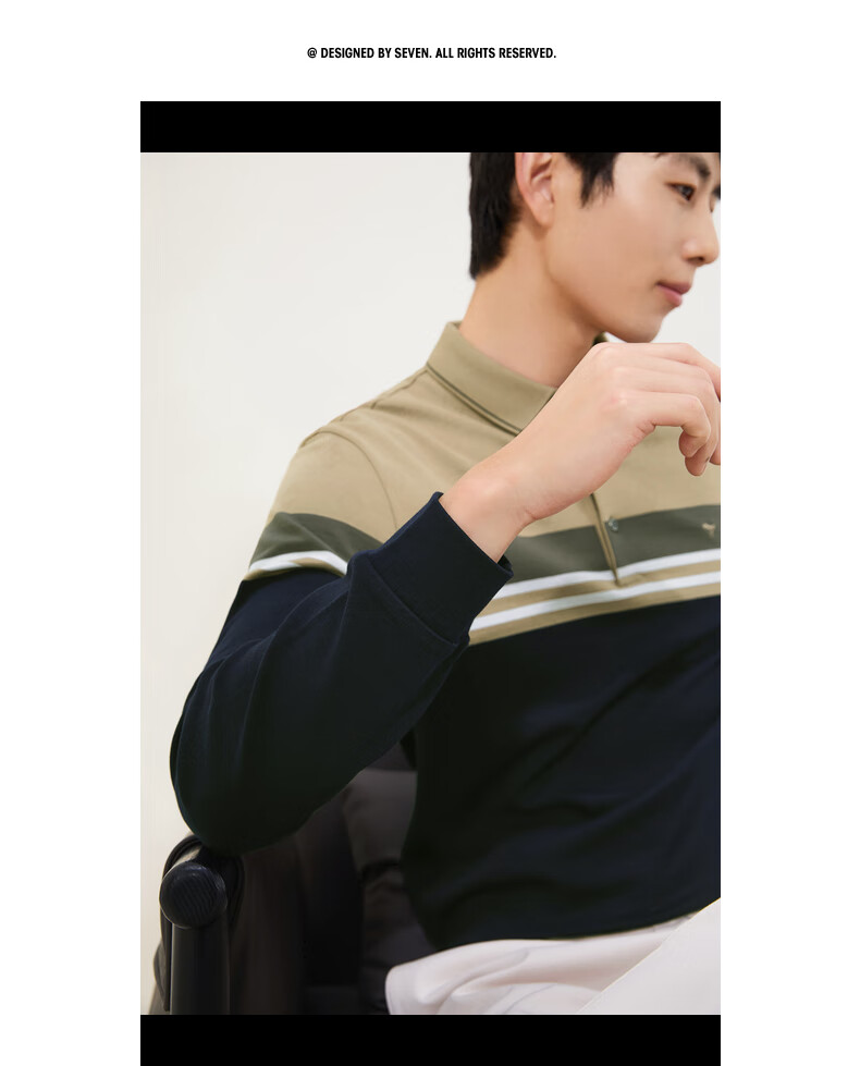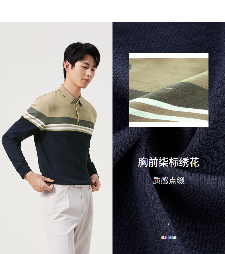 Qipai striped polo shirt/non-deformable collar polo shirt men's long-sleeved autumn business versatile lapel T-shirt khaki L