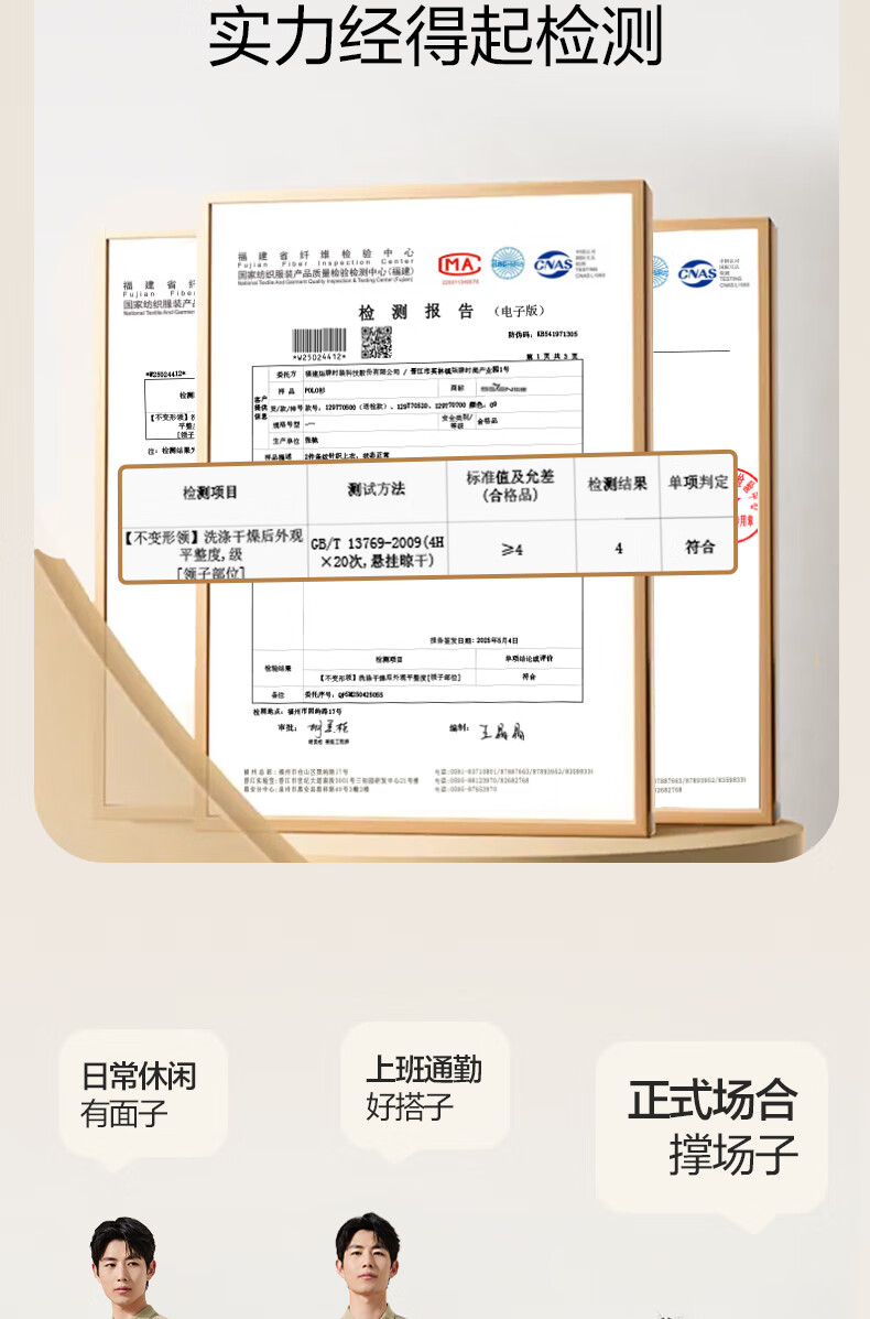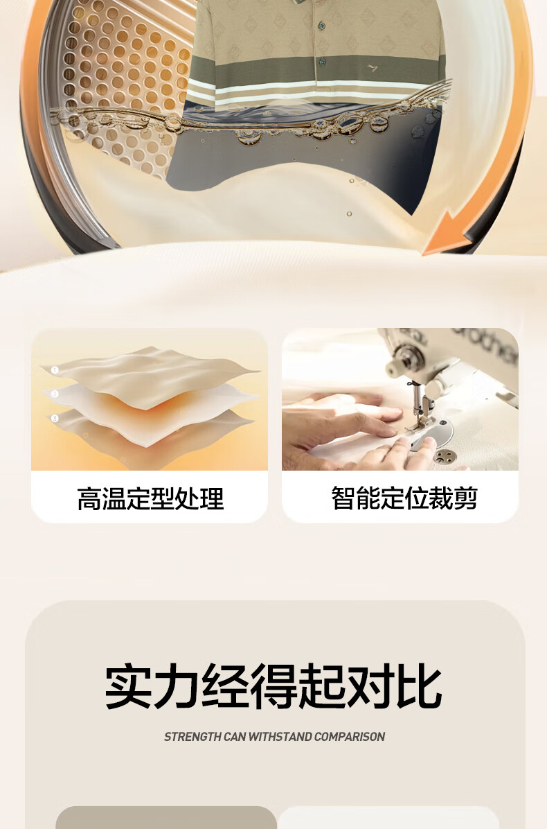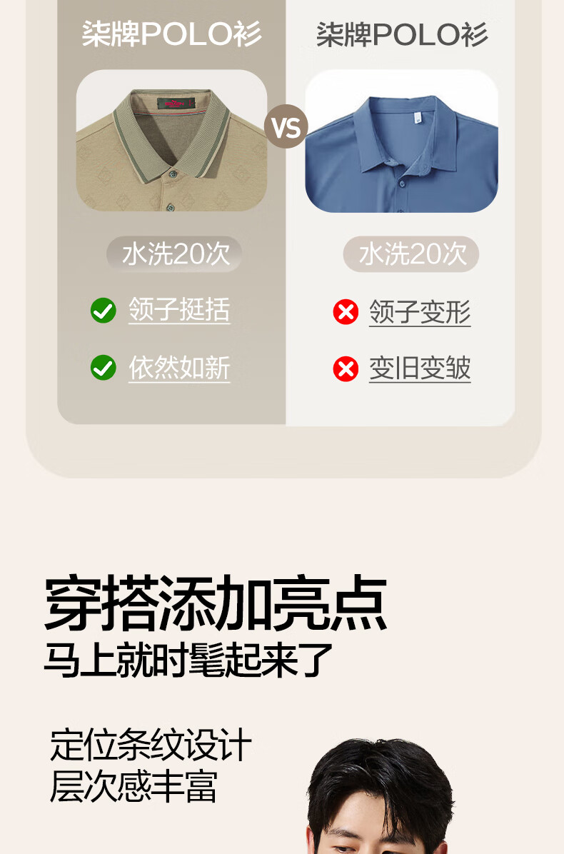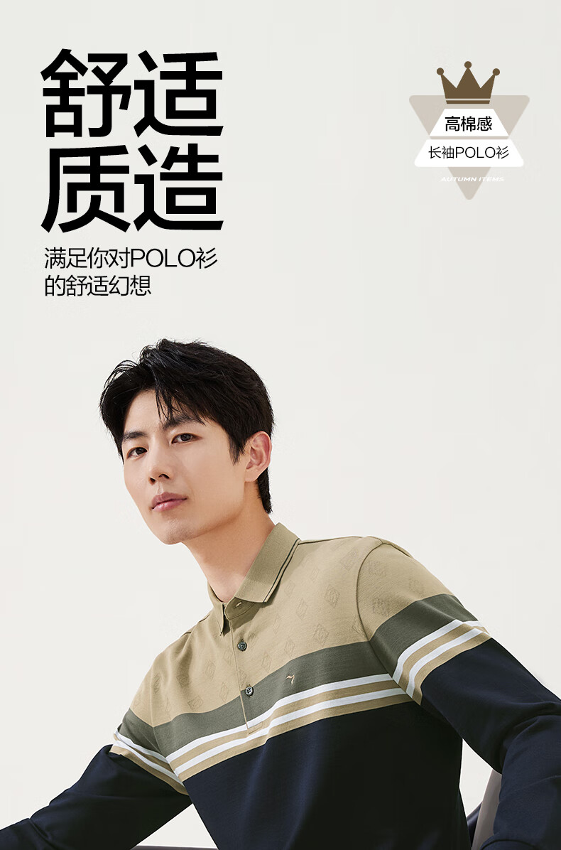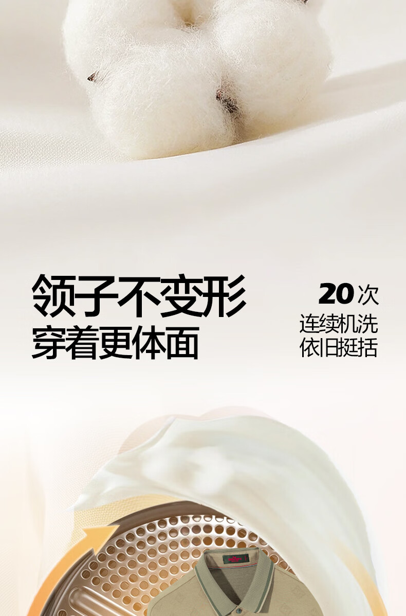 Qipai striped polo shirt/non-deformable collar polo shirt men's long-sleeved autumn business versatile lapel T-shirt khaki L