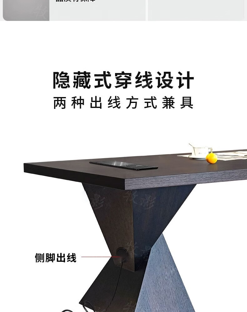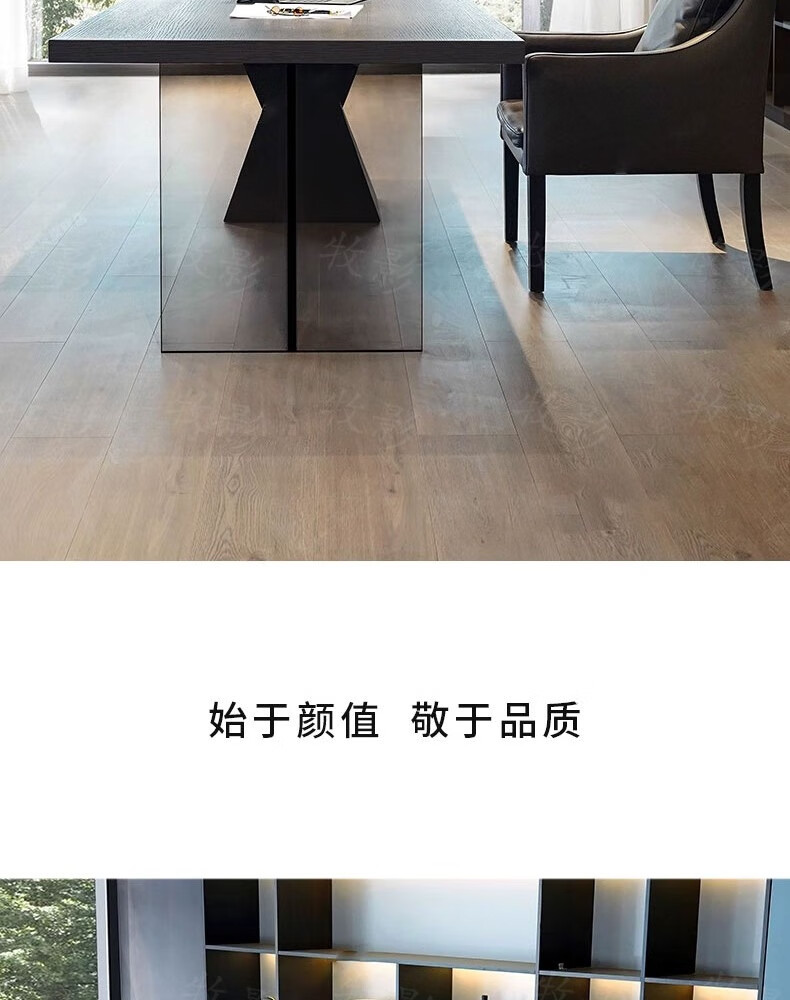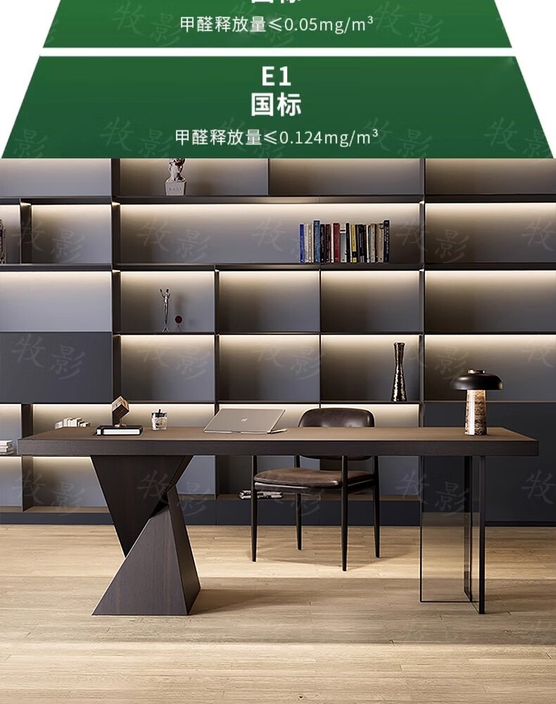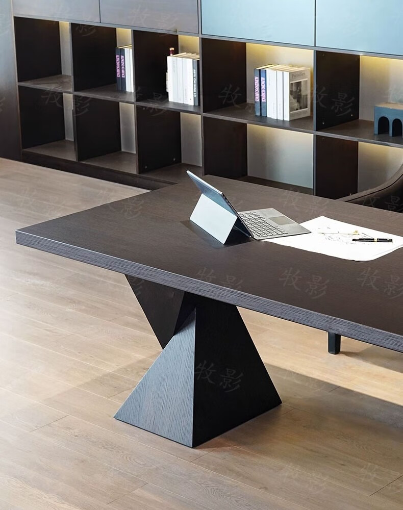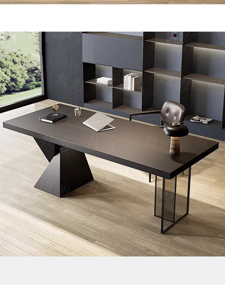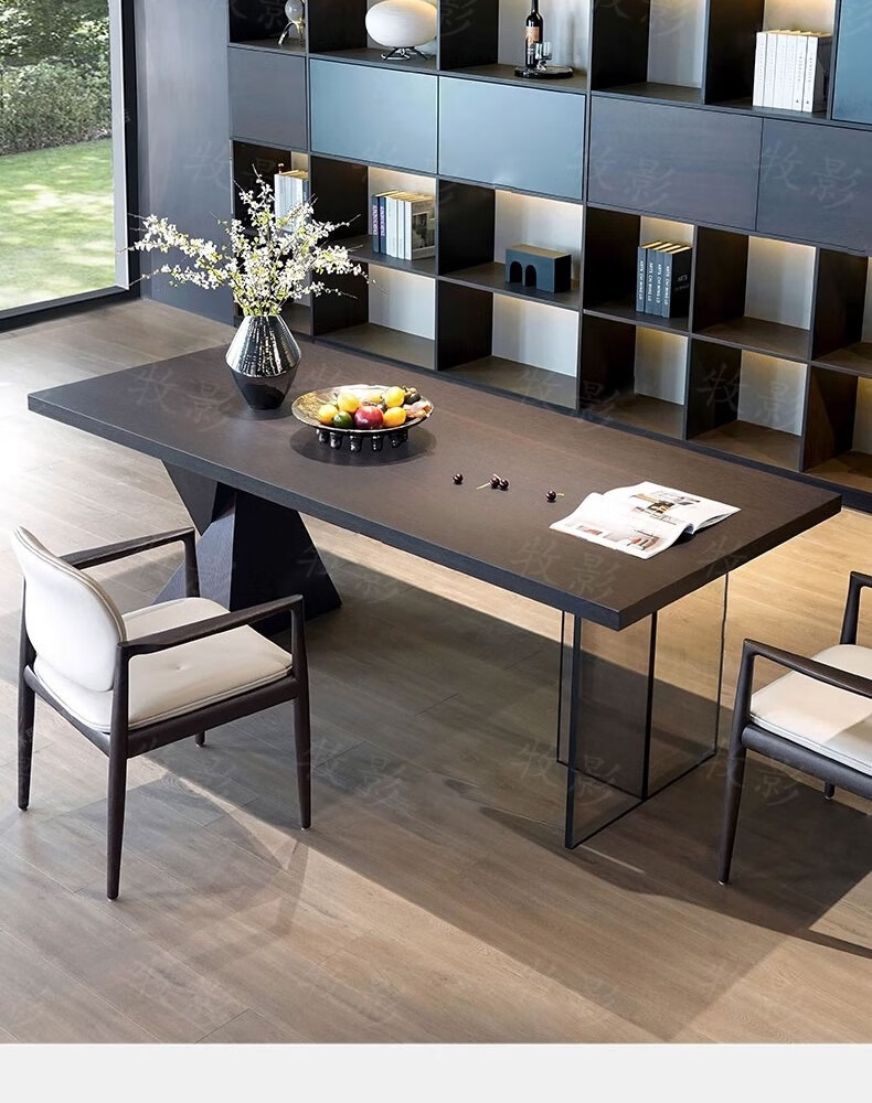 Muying Italian minimalist study large desk solid wood light luxury high-end home living room desk modern simple computer desk smoked wood color + acrylic desk + power strip 220*90*75cm