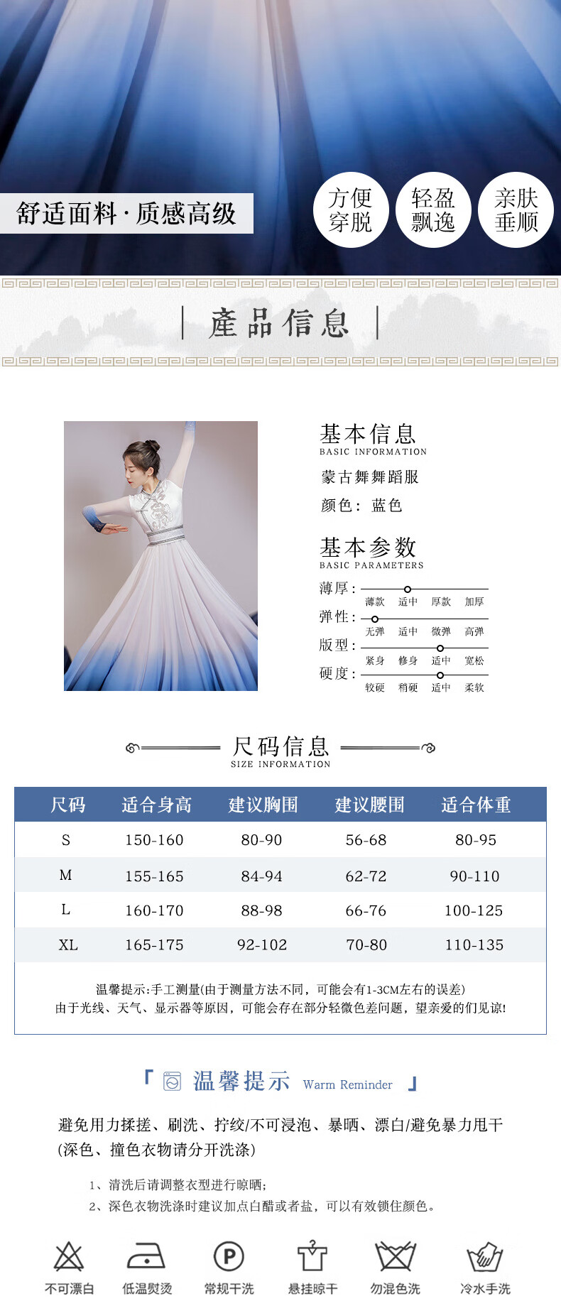 Gosilang Mongolian costume female blue dance costume adult art test large swing skirt opening dance dress Mongolian stage table gradient color M