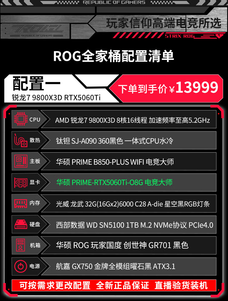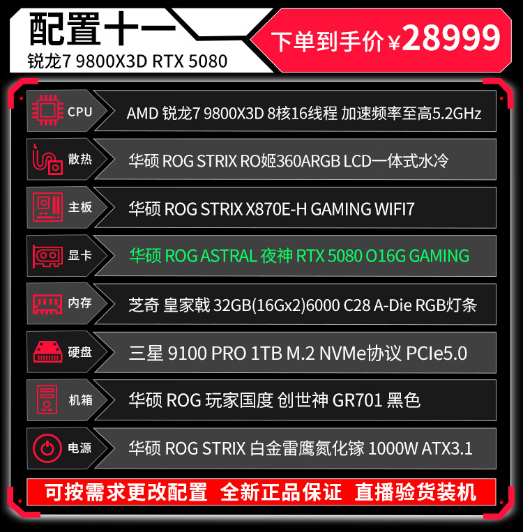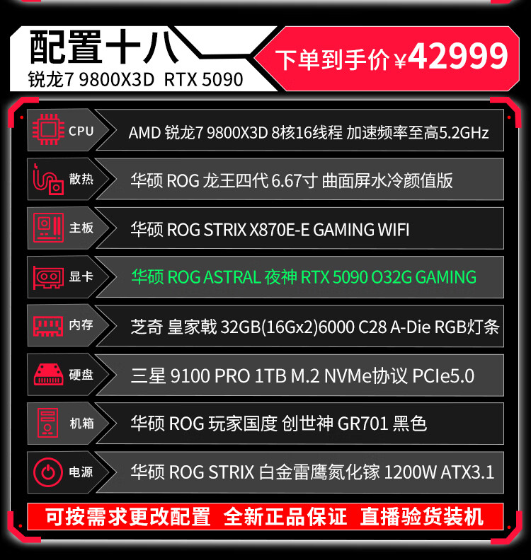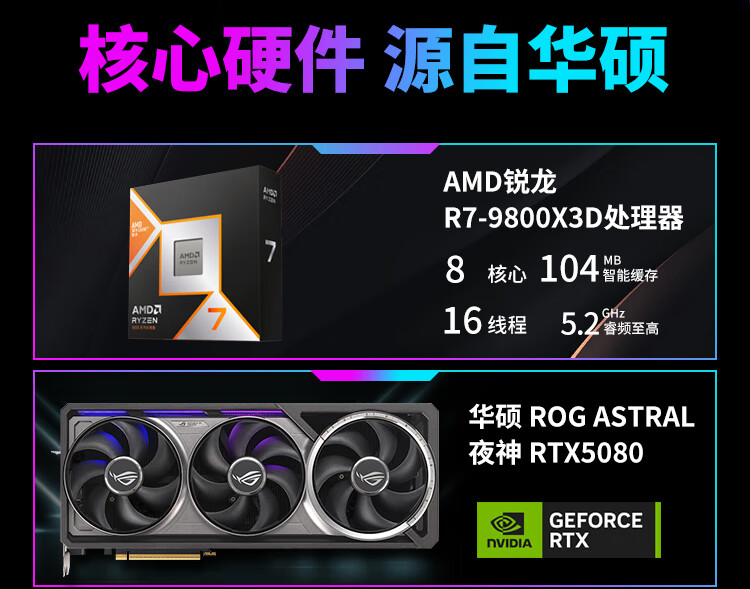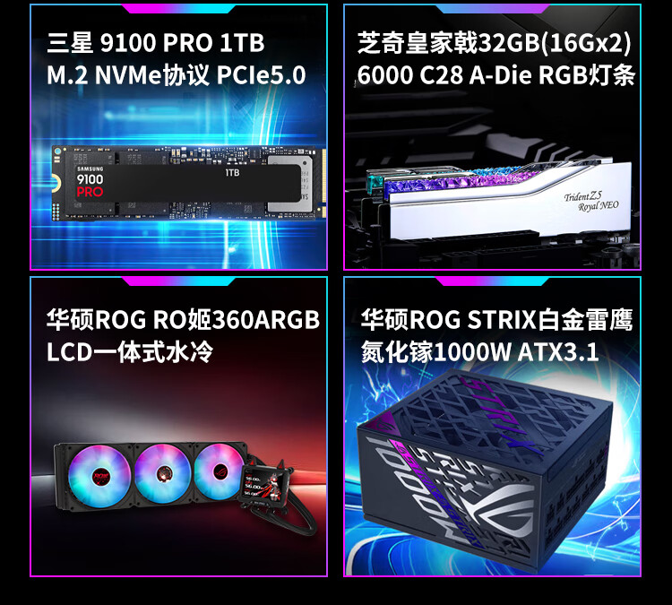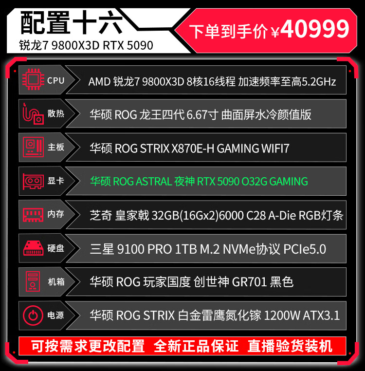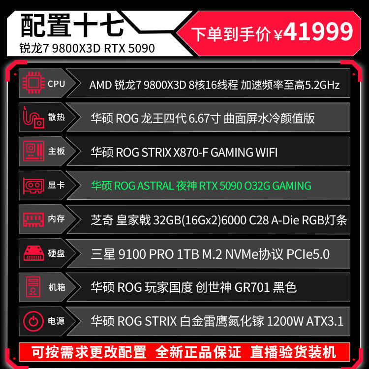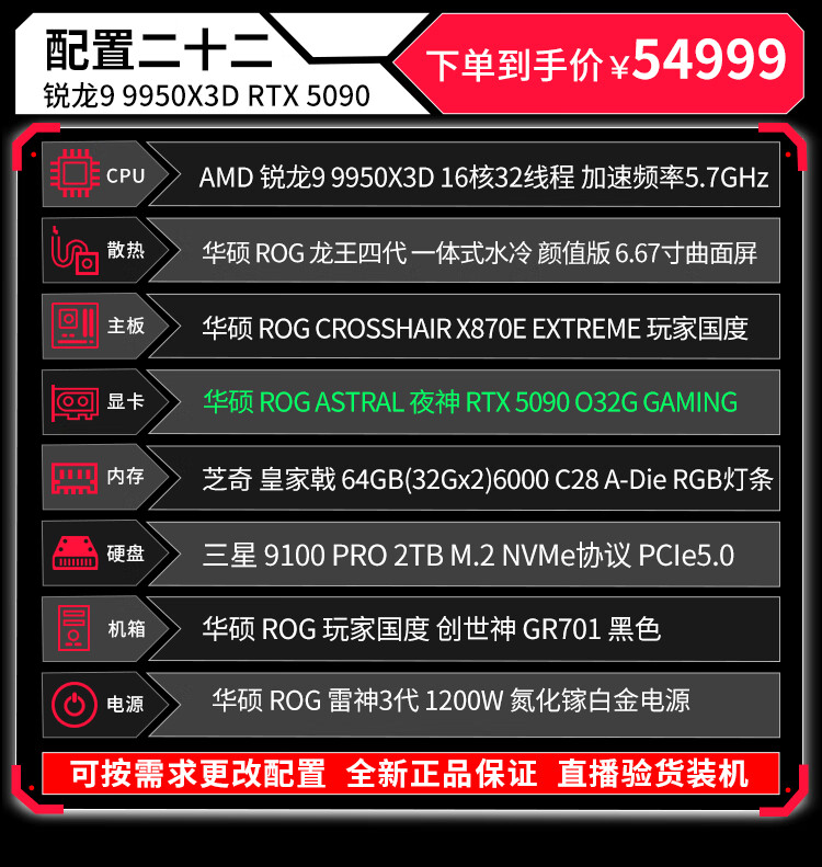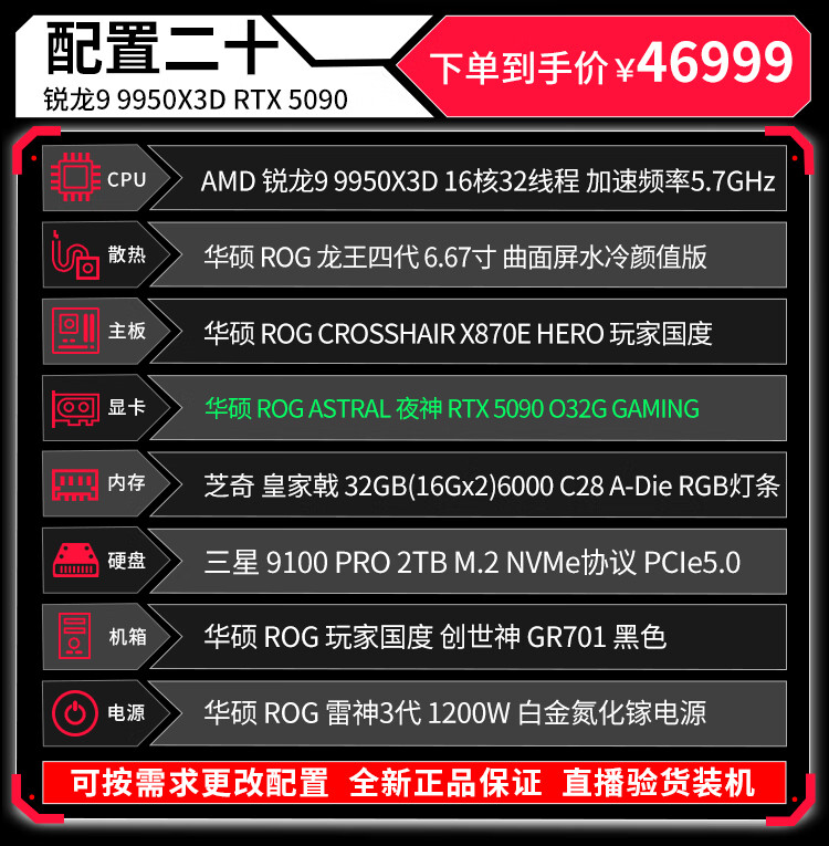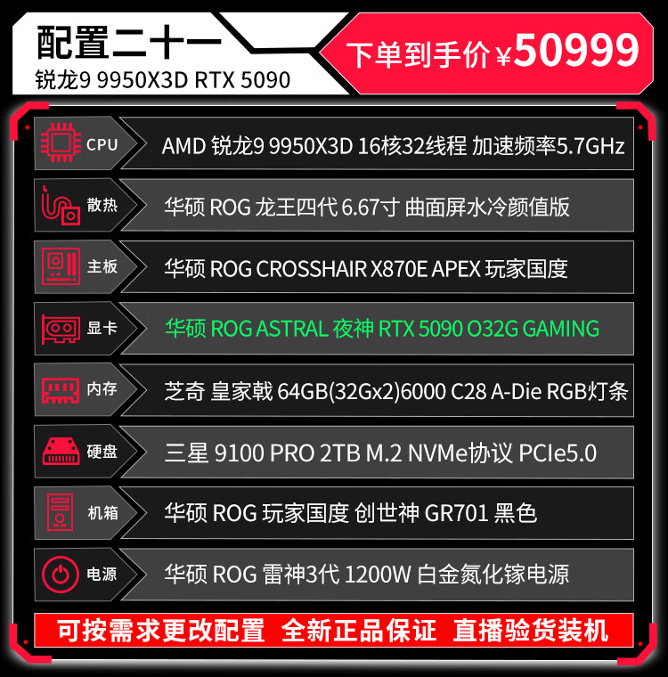 ASUS (ASUS) ROG Family Bucket Genesis Host 5090 5080 Night God 5070Ti Raptor 9800X3D Thousand Frames E-Sports Game Live Video Editing DIY Assembly Computer Complete Machine Twenty R9 9950X3D+RTX5090 Night God