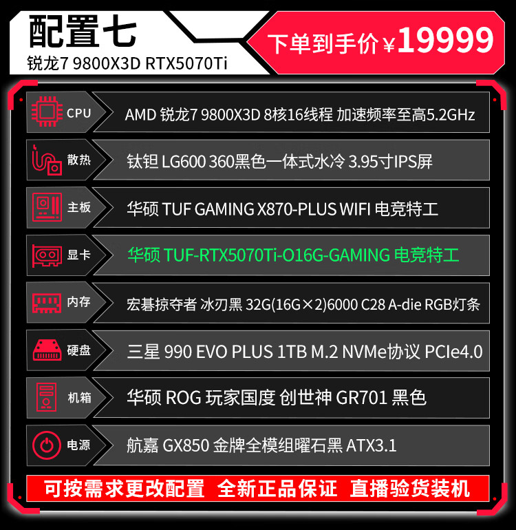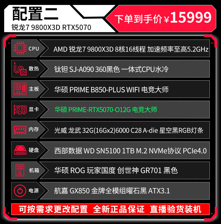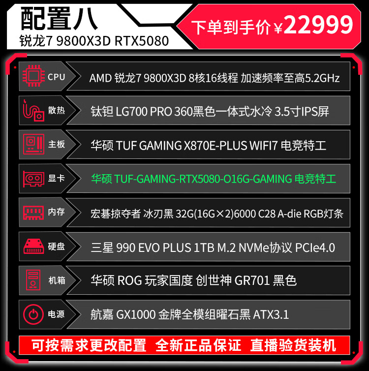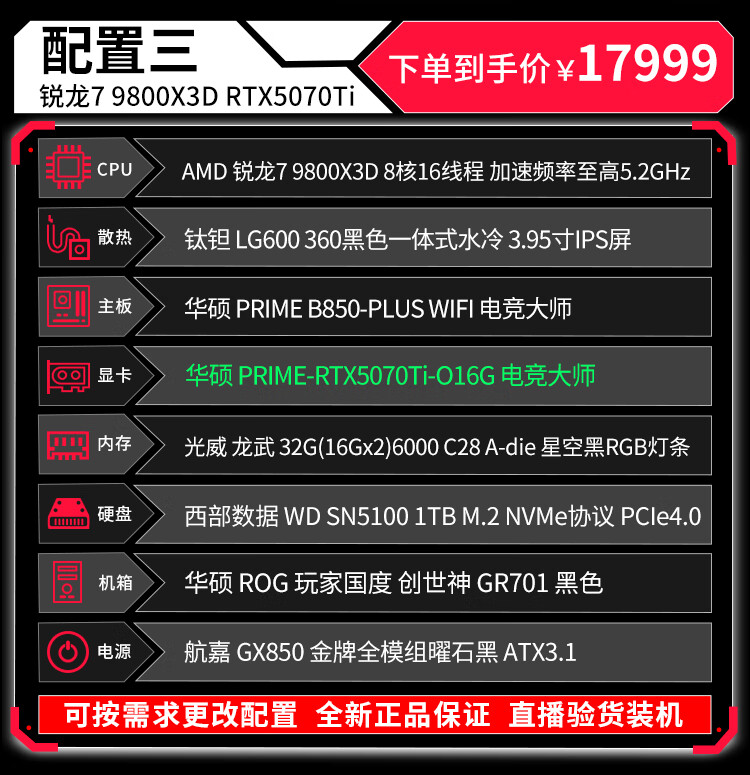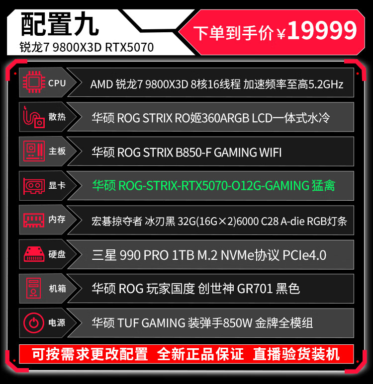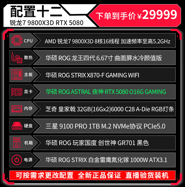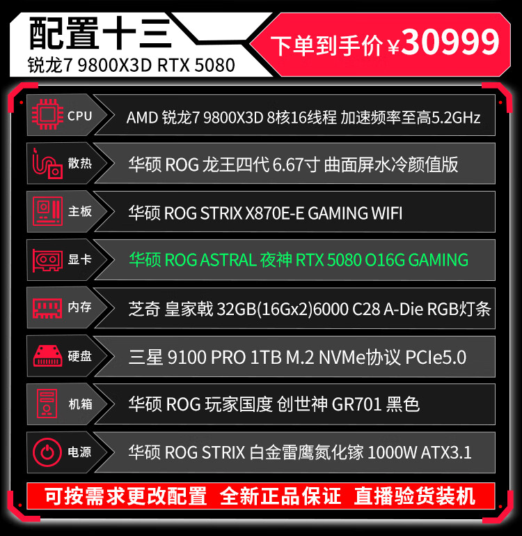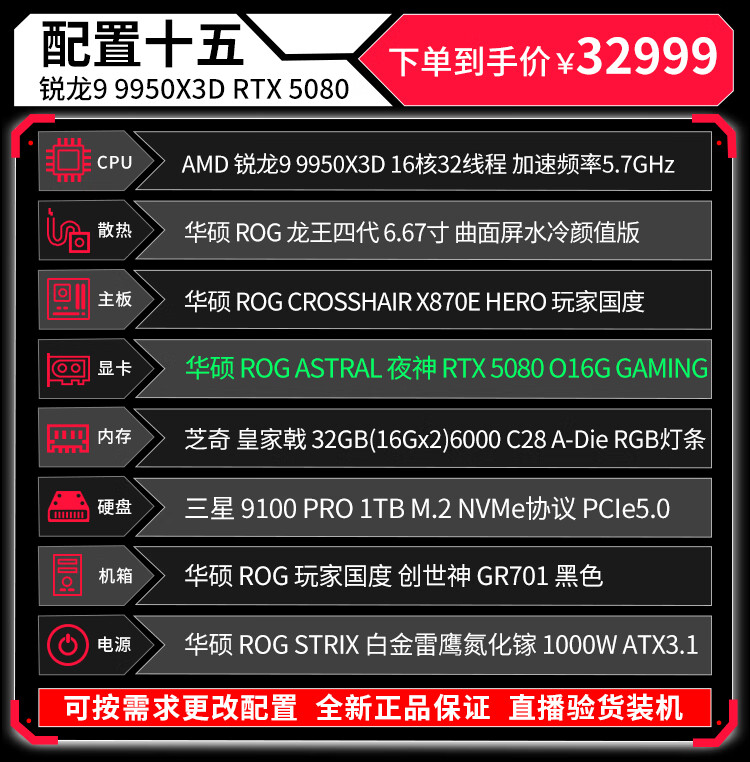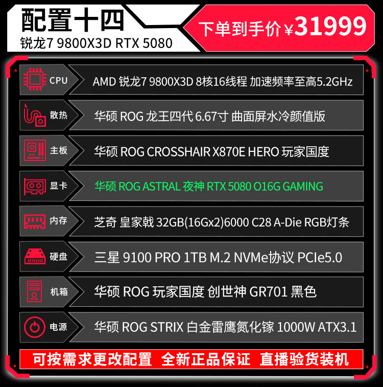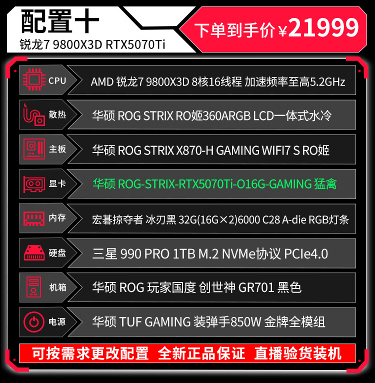 ASUS (ASUS) ROG Family Bucket Genesis Host 5090 5080 Night God 5070Ti Raptor 9800X3D Thousand Frames E-Sports Game Live Video Editing DIY Assembly Computer Complete Machine Twenty R9 9950X3D+RTX5090 Night God