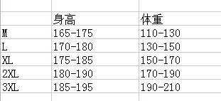 China (cm) 160-165/84-86 165-170 / 88-90 167-172 / 92-96 168-173 / 98-102 170-176 / 106-110
