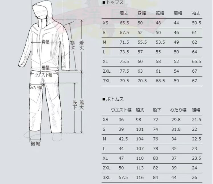 Outseam (cm) 99 cm 101.5 cm 104 cm 106.5 cm 109 cm