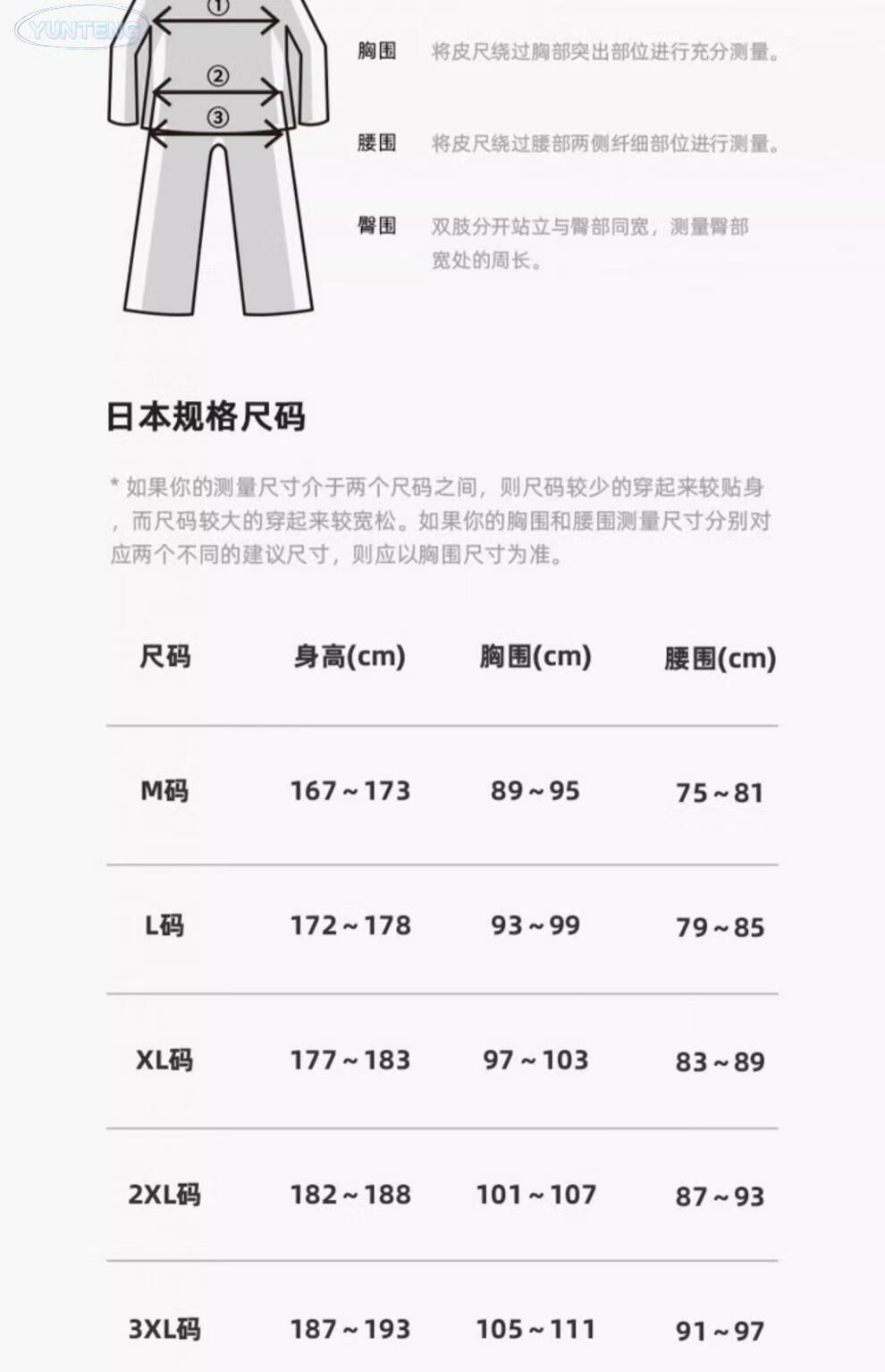 China (cm) 160-165/84-86 165-170 / 88-90 167-172 / 92-96 168-173 / 98-102 170-176 / 106-110