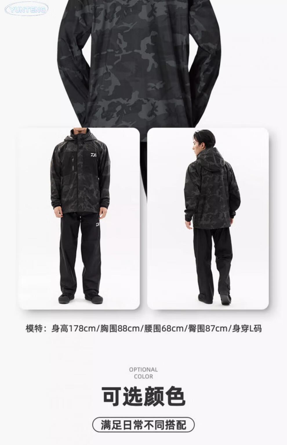DAIWA DR-3823 Assault Jacket Set Waterproof Rock Fishing Raincoat Luya Outdoor Leisure Fishing Suit Customized Black Camouflage/L Code