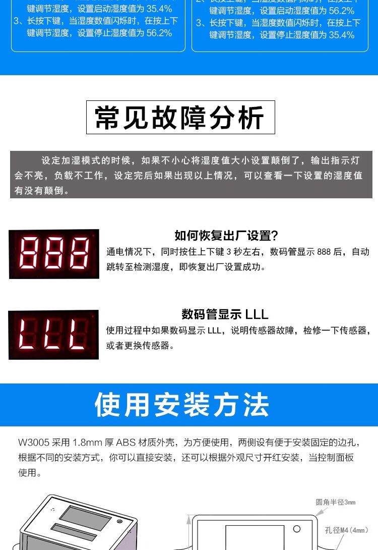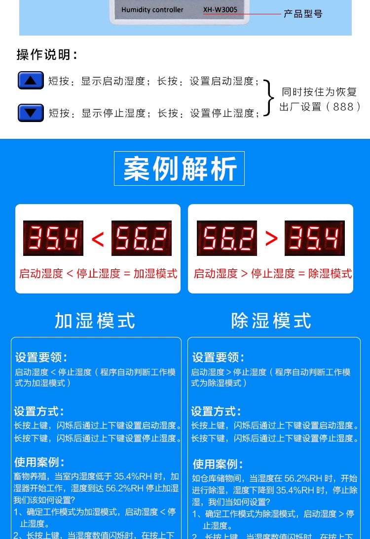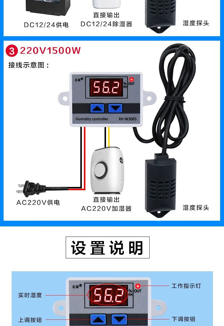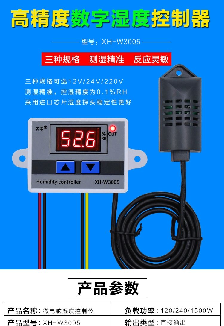 Yue Changsheng HKNAXH-W3005 digital display digital humidity controller humidity control instrument humidity control switch humidification dehumidification constant humidity control 12V