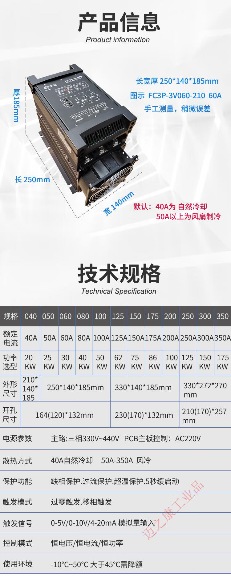 Yue Changsheng three-phase power regulator SCR silicon controlled voltage regulator power regulator 30KW50KW150KW power controller 300A150KW300A150KW