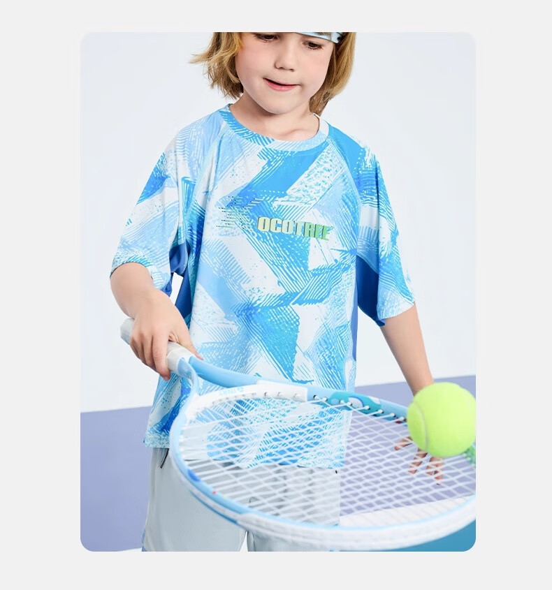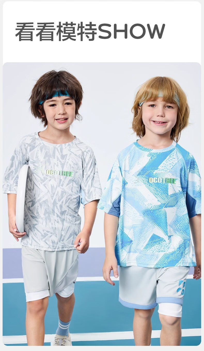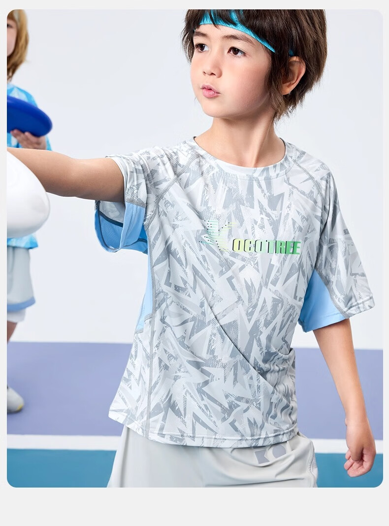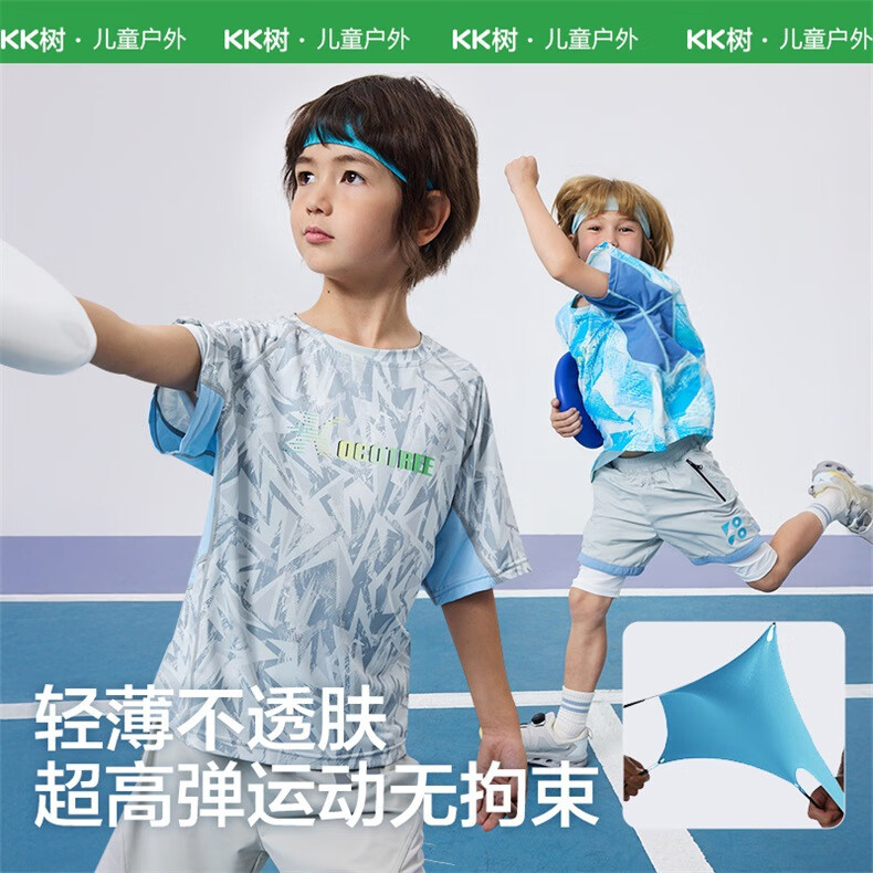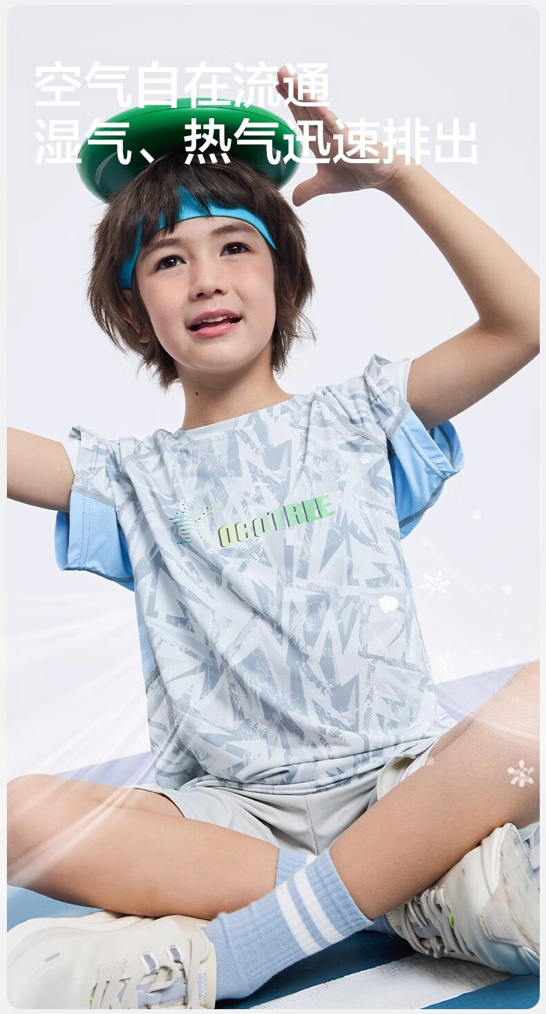 KocotreeKK tree children's quick-drying clothes for boys and girls short-sleeved cool T-shirt summer moisture-absorbent sun protection sports top 2025 new geometric gray 110
