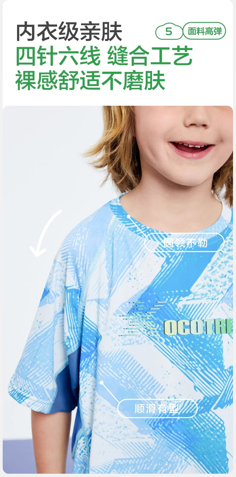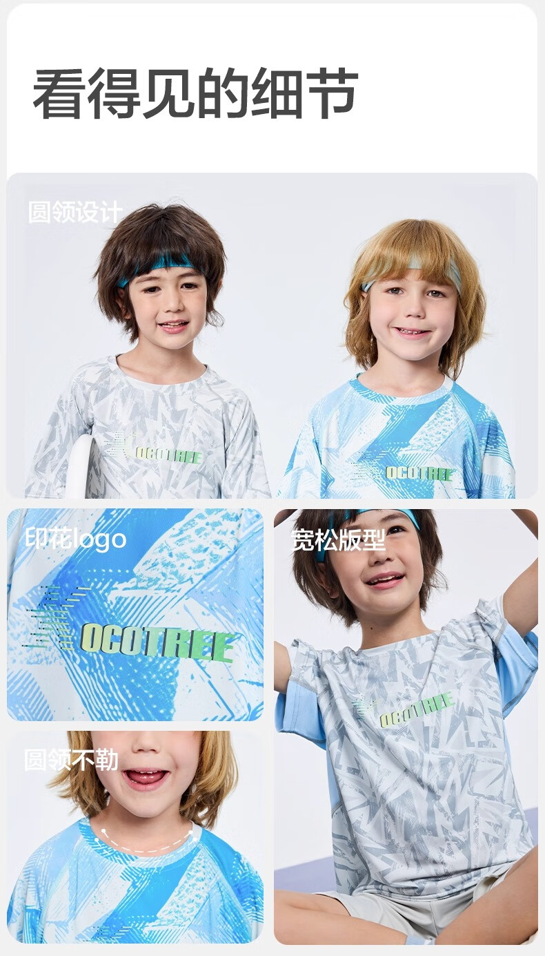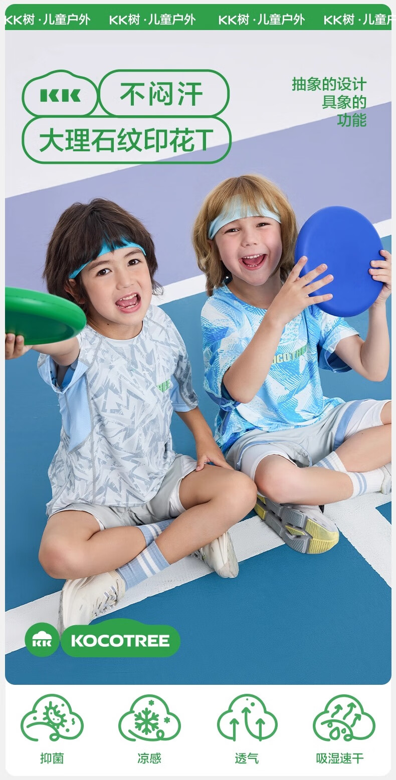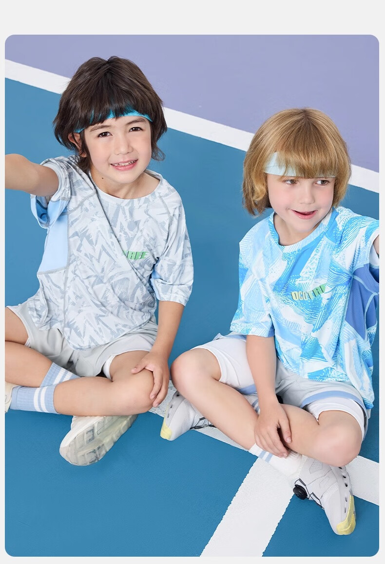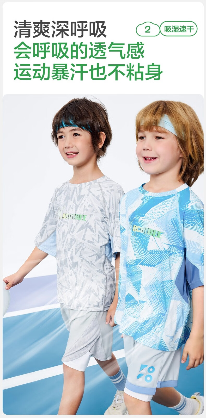 KocotreeKK tree children's quick-drying clothes for boys and girls short-sleeved cool T-shirt summer moisture-absorbent sun protection sports top 2025 new geometric gray 110