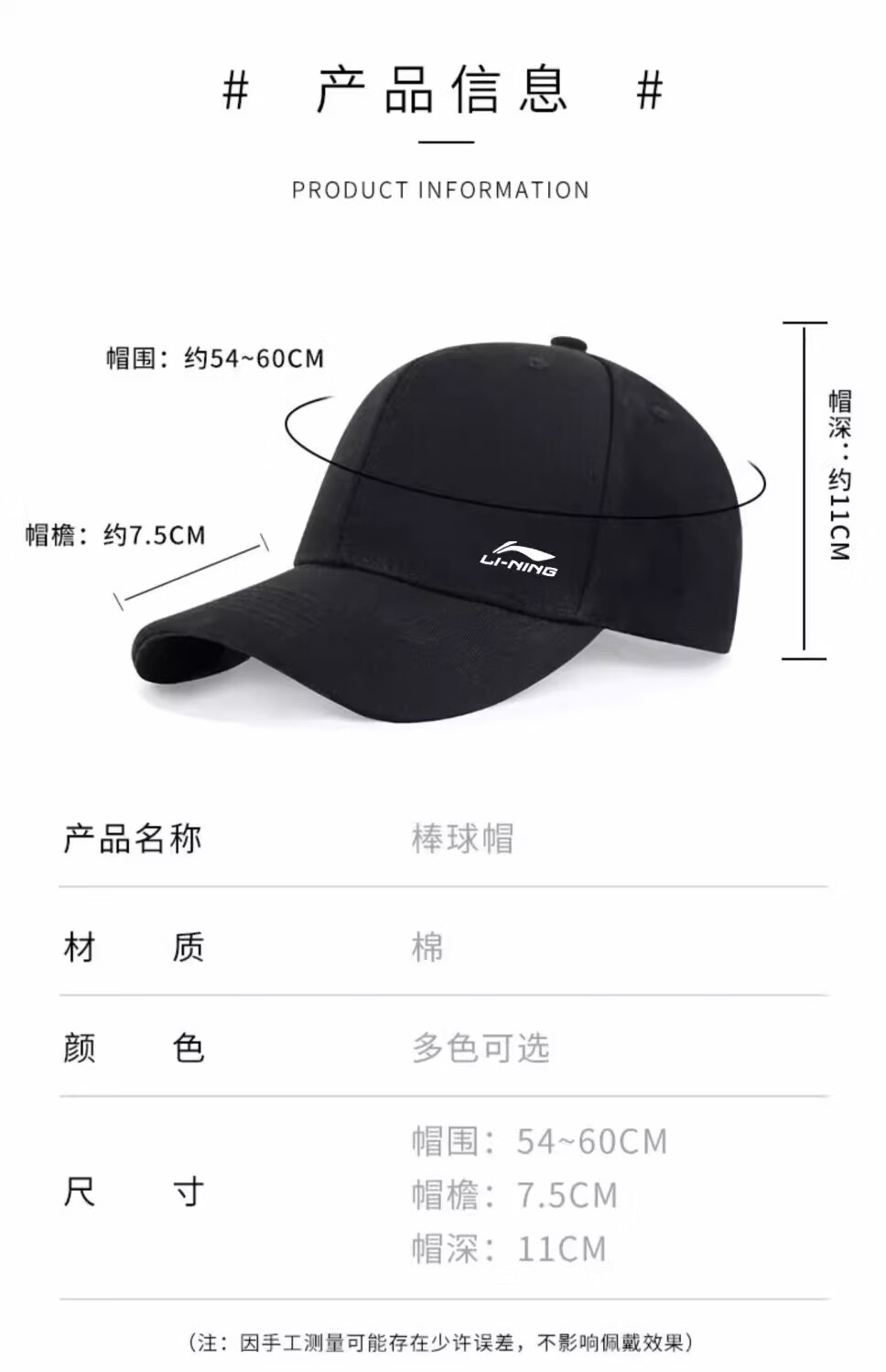 2025 New Hat Baseball Cap Autumn and Winter Men and Women Outdoor Travel Fishing Peaked Cap Large Head Circumference Sports Sun Hat LN Black Single Standard One Size Pure Cotton Version Buckle Adjustment 52-62cm