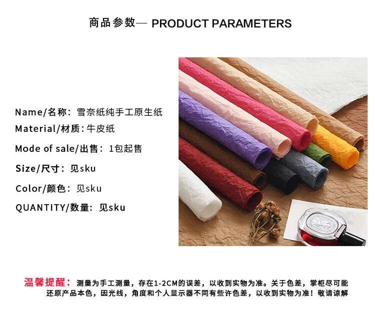 Yiliang Xuenai paper fluffy hand-rubbed paper pure native paper handmade stone pattern paper pleated flower wrapping paper flower wrapping paper cherry blossom pink (5 sheets/Xuenai paper) 53*56cm