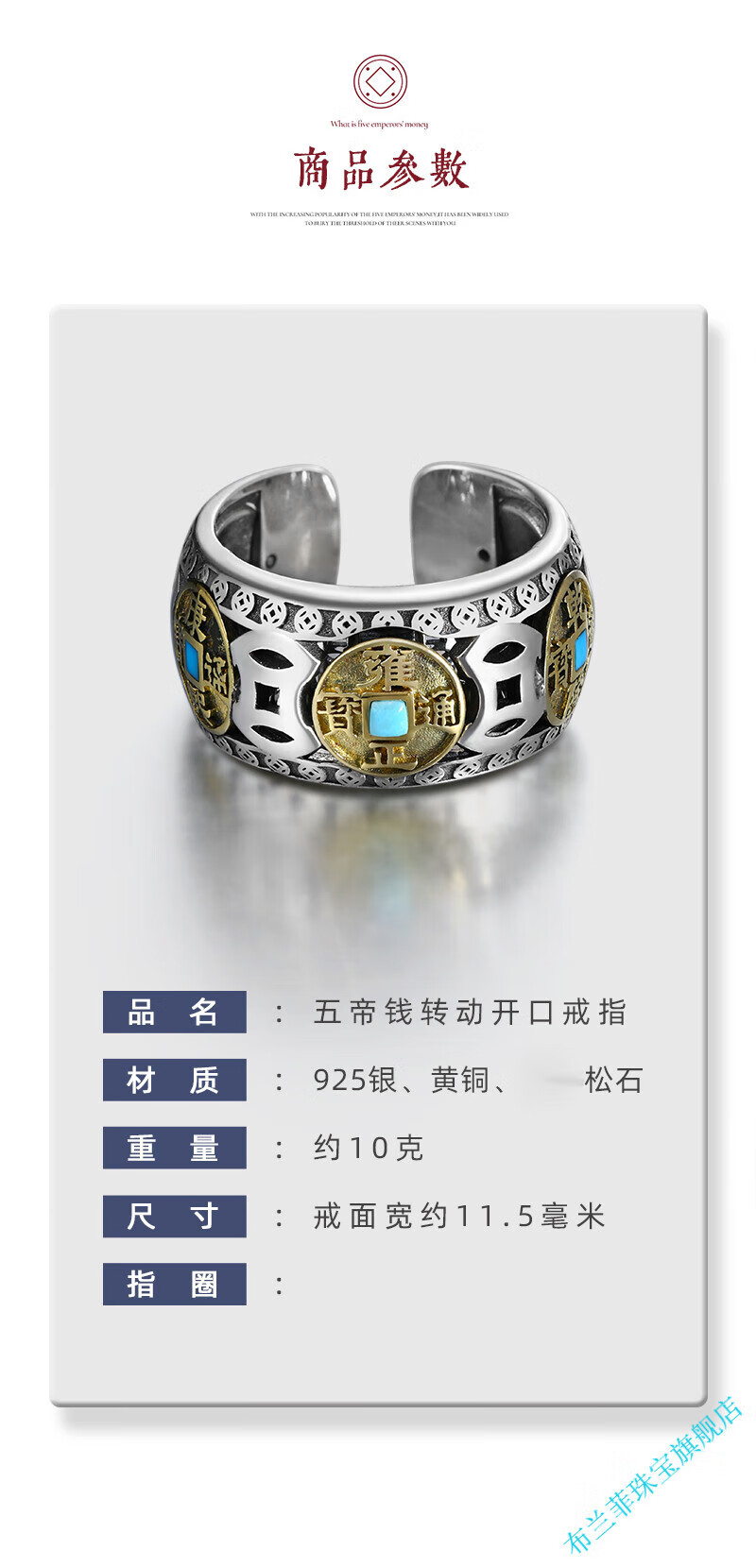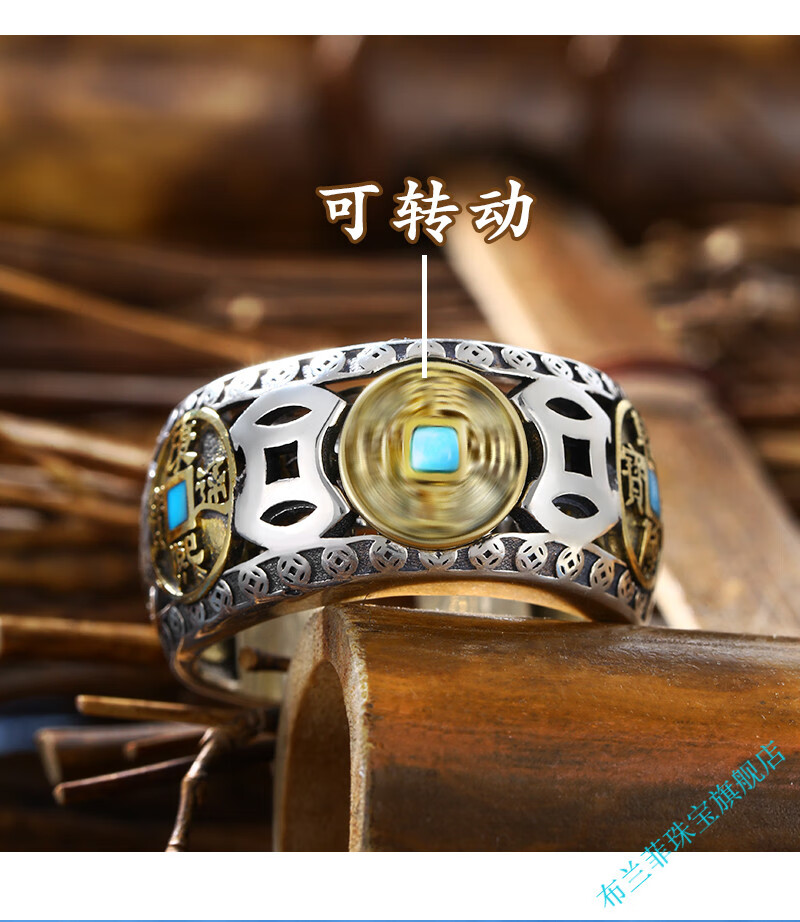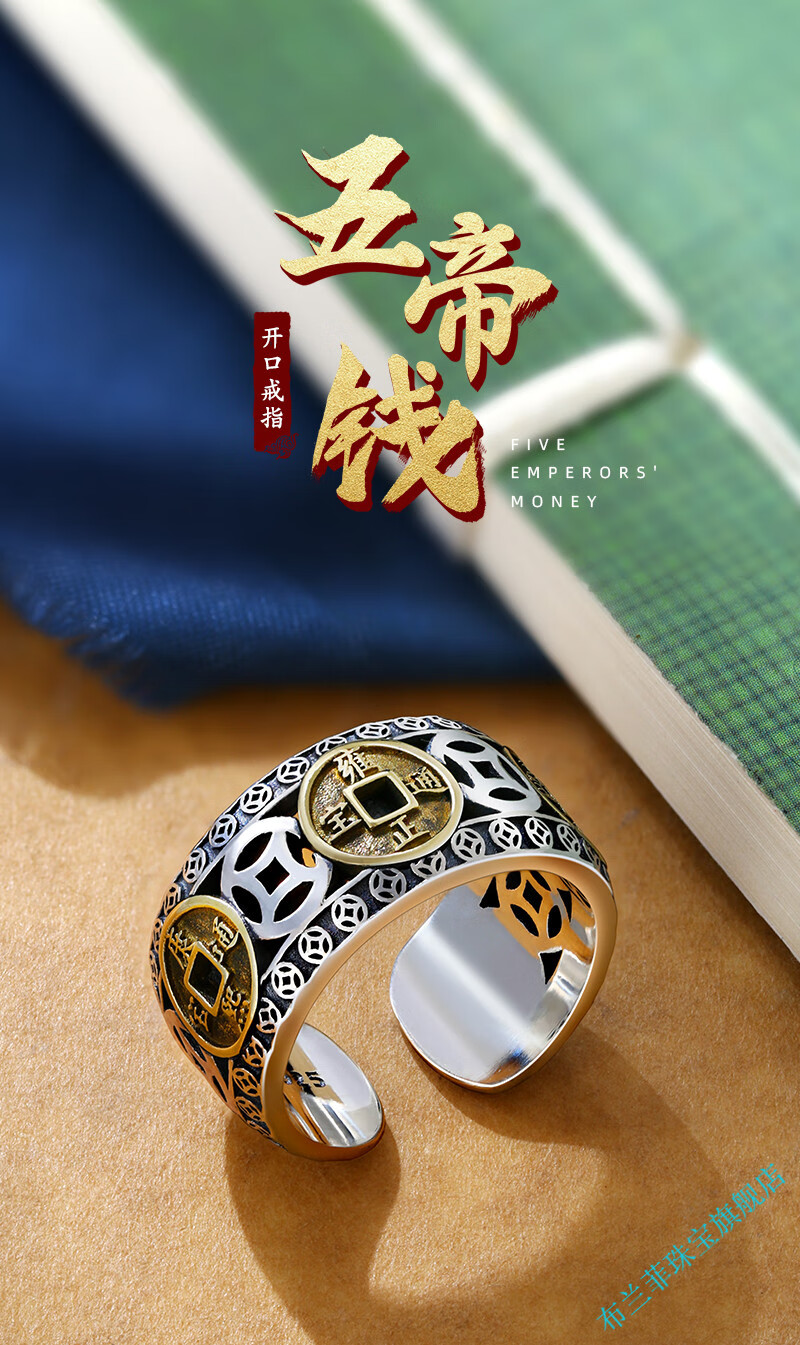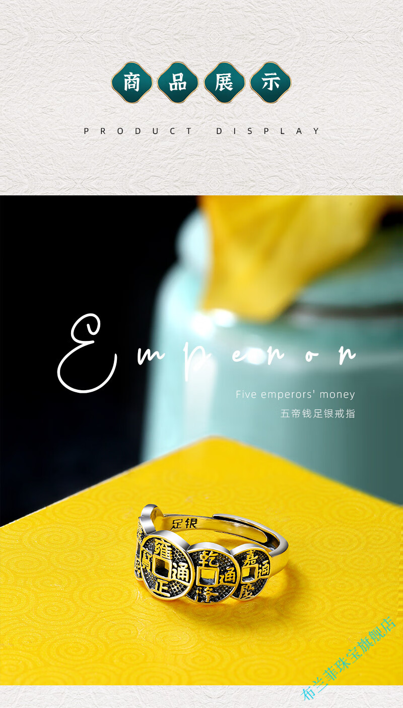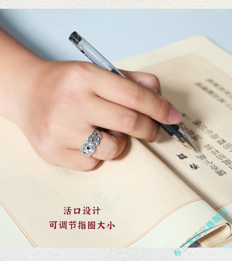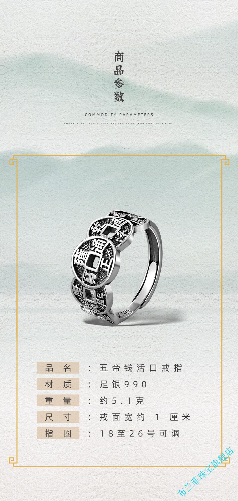 Xinheming Men's Ring Five Emperors Money Solid Color Silver Coins Silver Jewelry Thai Silver Men's and Women's Index Finger Ancient Style National Trend Personality 99 Pure Silver 925 Silver Gold Color Five Emperors Money Small Open Ring About 1