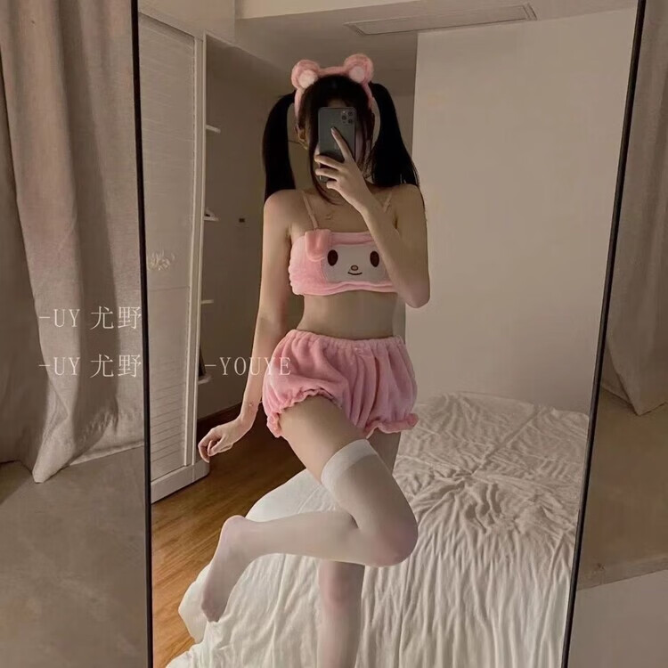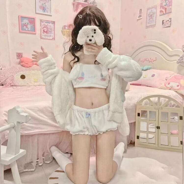 Renduo Autumn and Winter Girly Underwear Cute Plush Big Ears Jade Cinnamon Dog Tube Bra Set Home Clothes Pajamas White #玉香狗 One Size Medium Size 90-110Jin Jin is equal to 0.5 kg