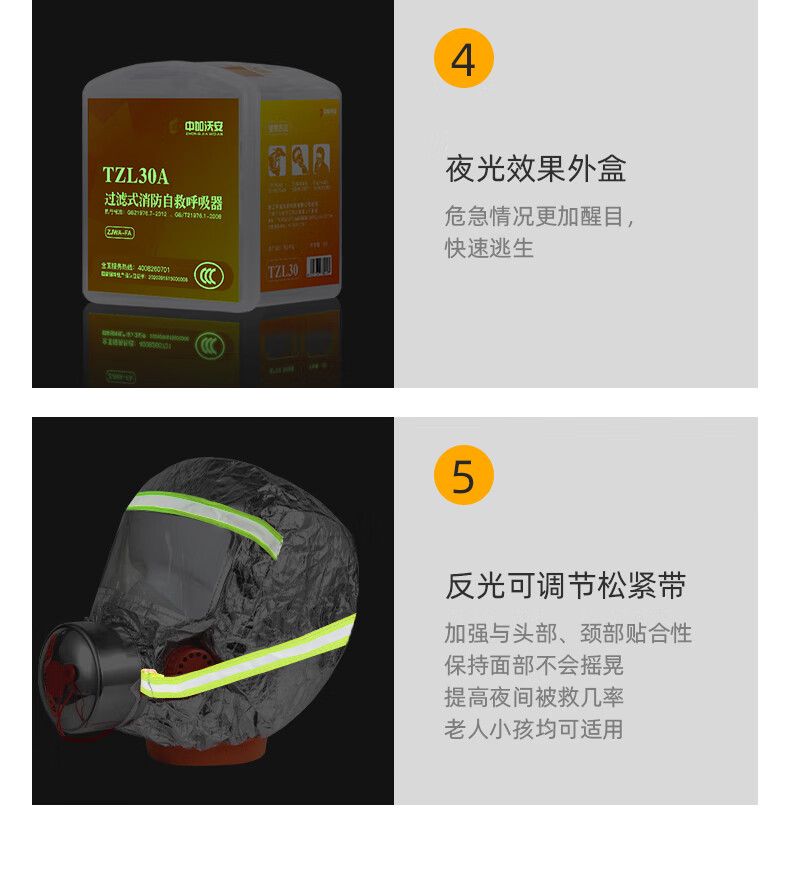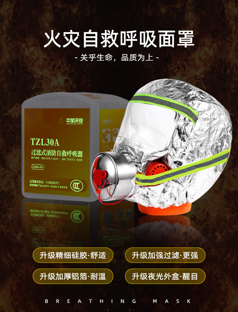 Zhongjia Woan filtered fire-fighting self-rescue respirator tzl30 mask fire-proof and smoke-proof gas mask household 3C fire escape household three-person protection escape suit 3c certification