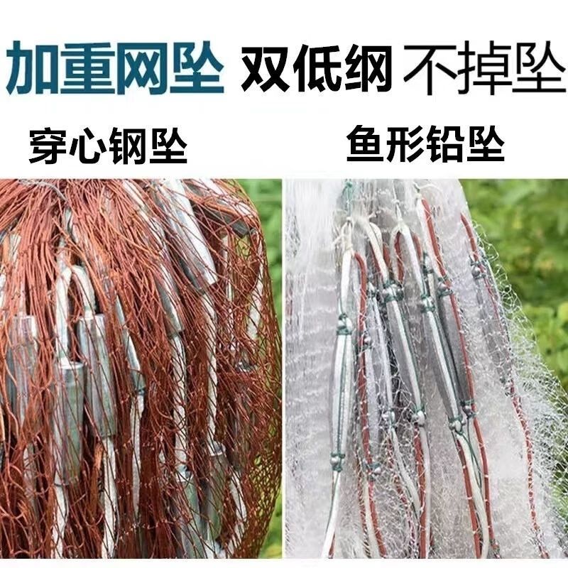 Hong'anze old-fashioned pure handmade horse-throwing net hand-thrown fishing net machine-woven hand-throwing fishing net lead pendant steel pendant small net fishing line 0.2 fingers 3.7 meters high 8Jin Jin equal to 0.5 kg fish lead pendant