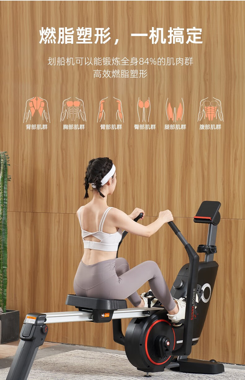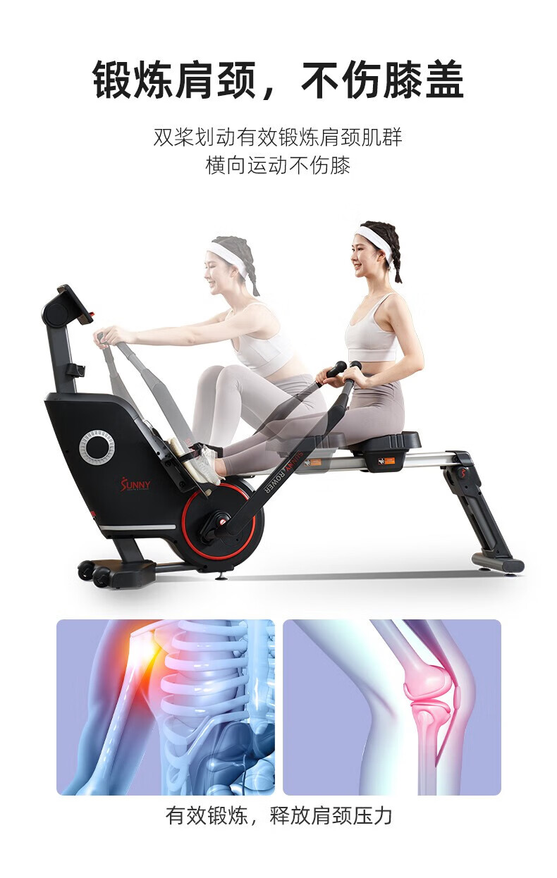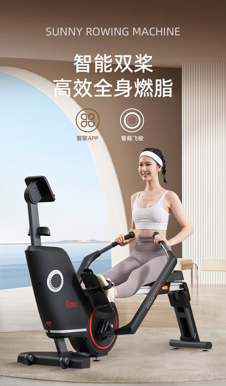 SUNNY American sculls rowing machine home magnetically controlled intelligent silent foldable rowing machine indoor sports fitness equipment 2 22-level resistance exercise shoulder and neck self-installation