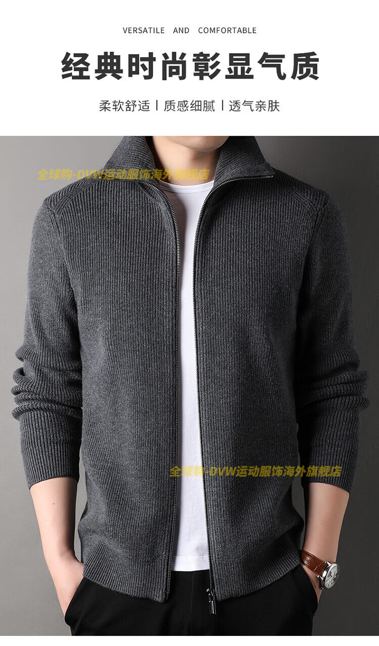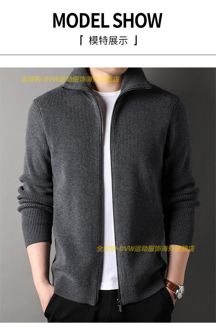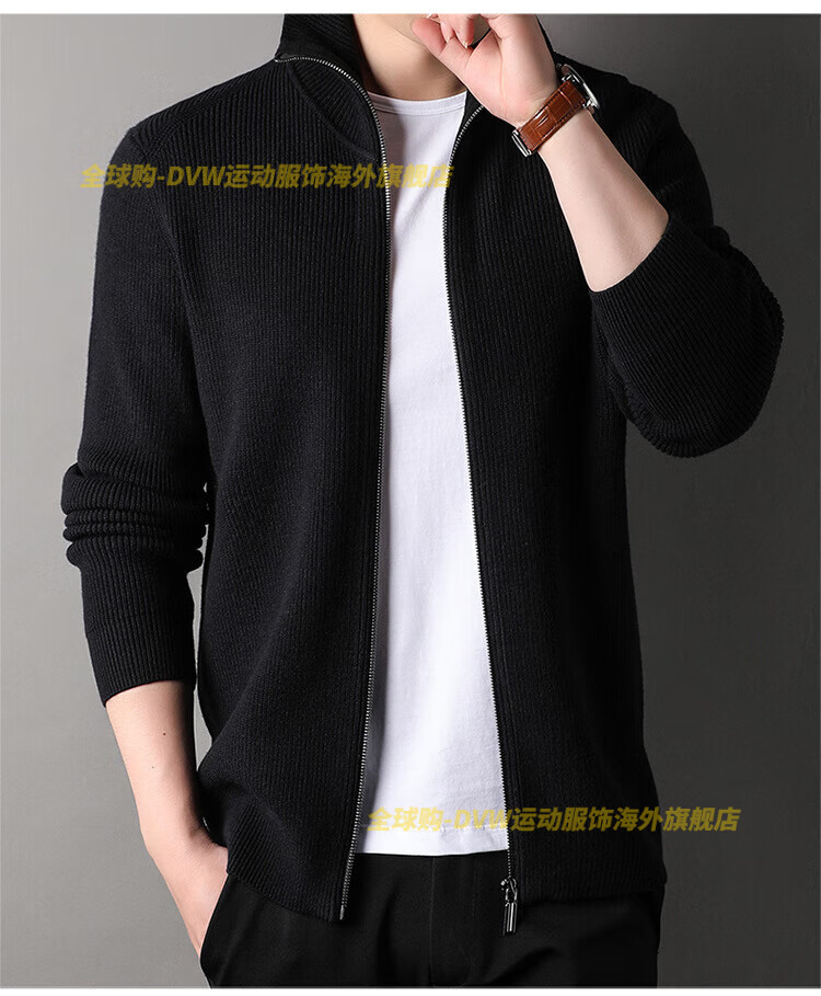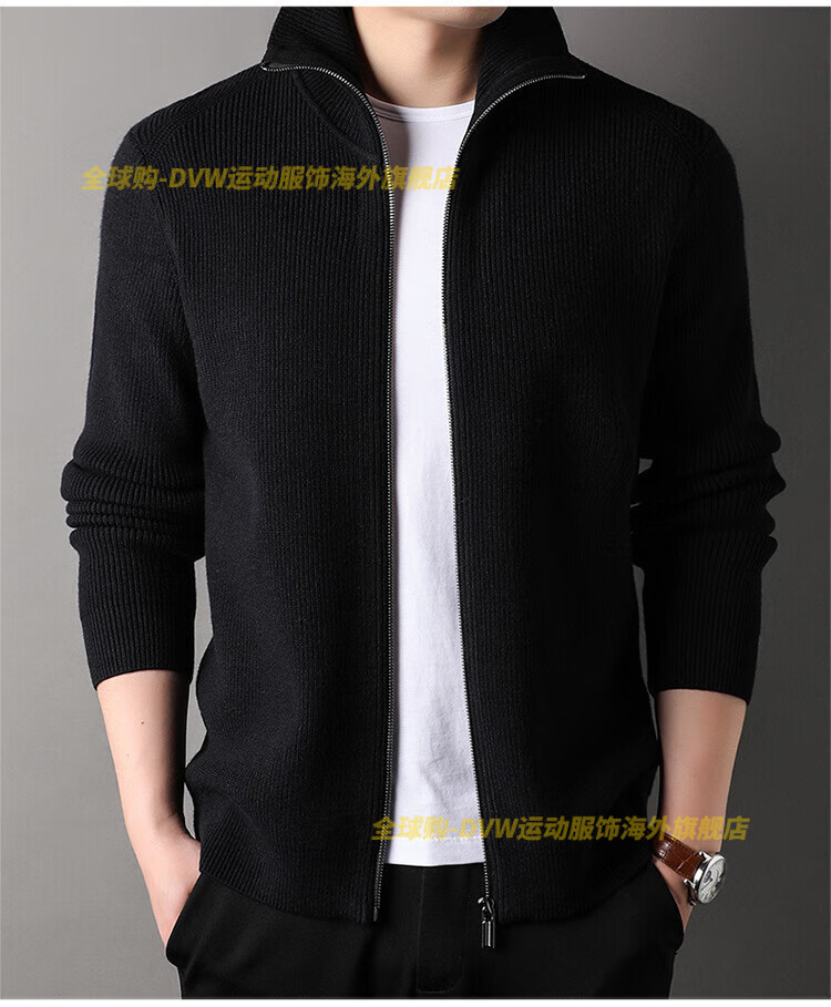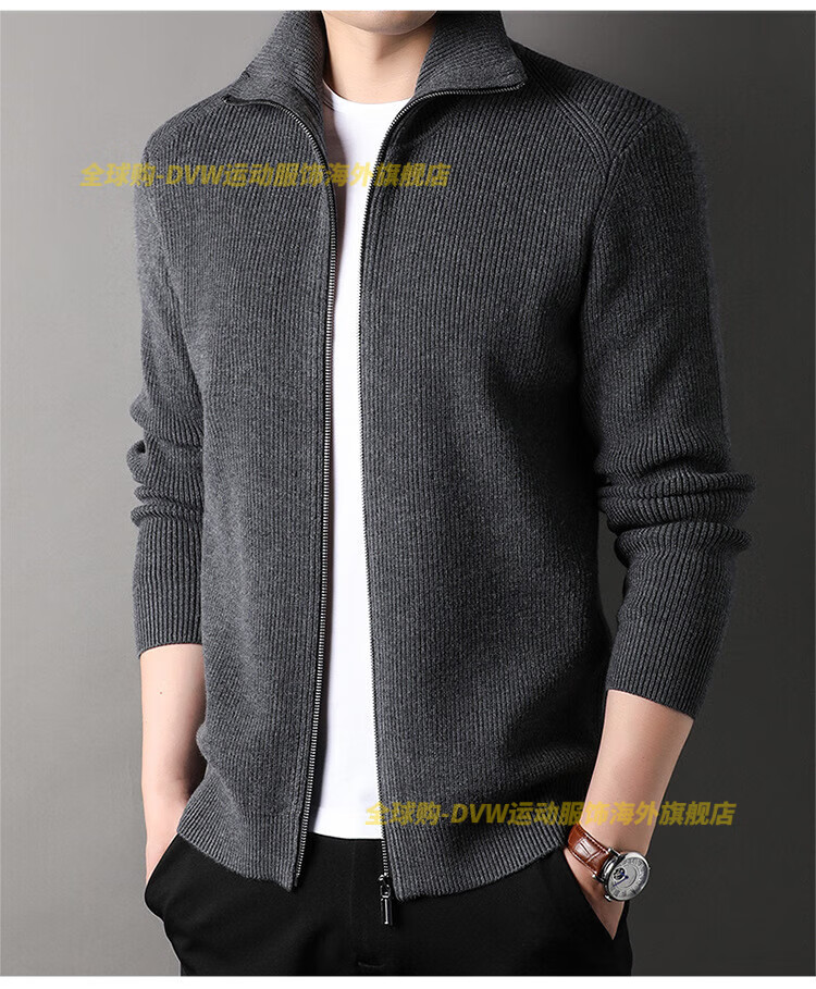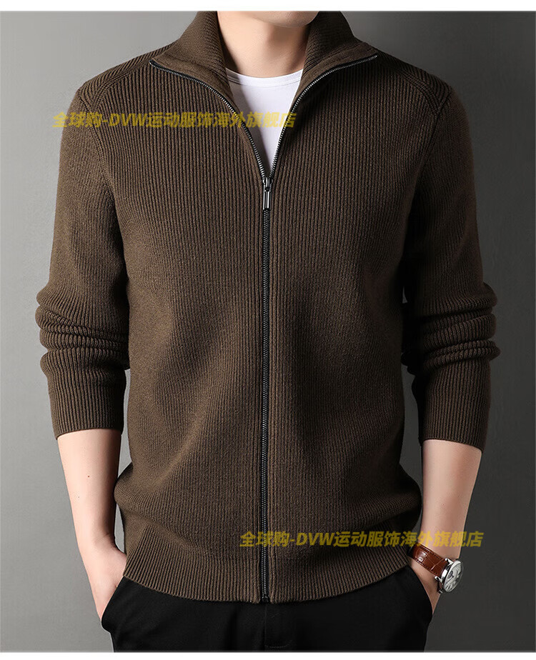 DVW international men's brand knitted wool cardigan autumn and winter new zipper loose solid color middle-aged wool top high-end dark coffee 2XL suitable for 160-180Jin Jin equals 0.5 kg