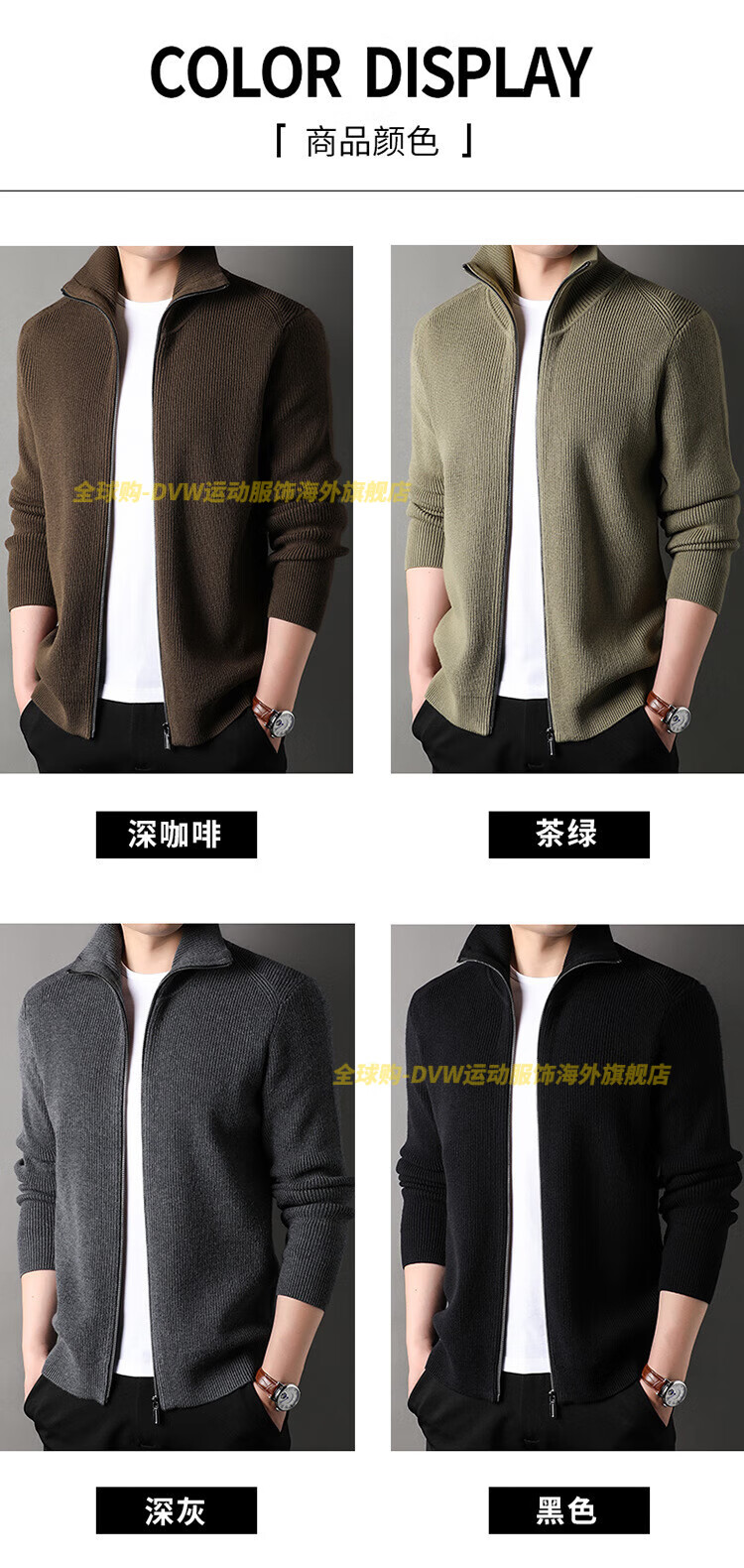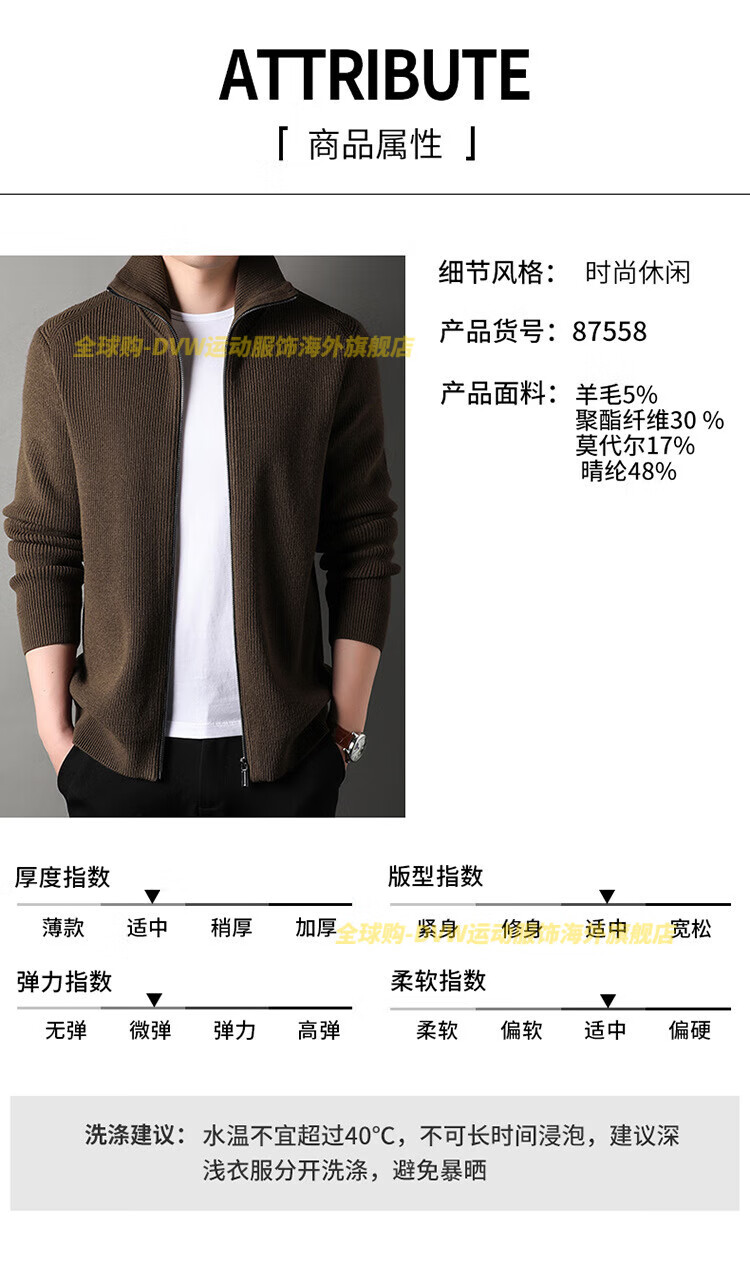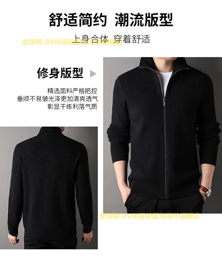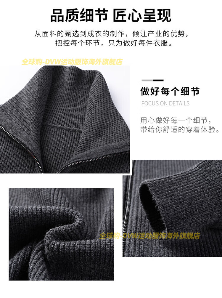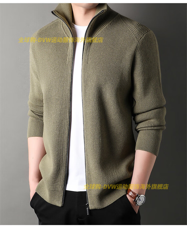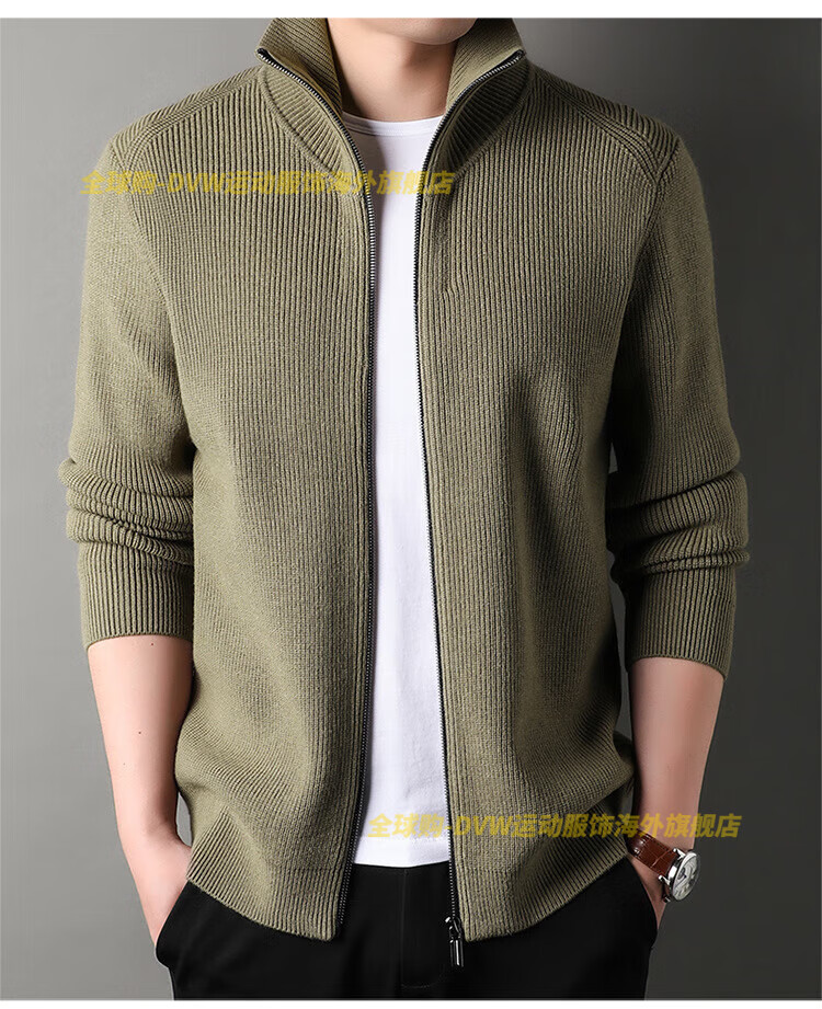 DVW international men's brand knitted wool cardigan autumn and winter new zipper loose solid color middle-aged wool top high-end dark coffee 2XL suitable for 160-180Jin Jin equals 0.5 kg