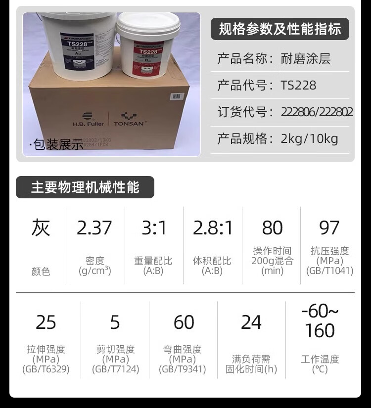 Kesaixin ts226228 wear-resistant coating silicon carbide metal anti-rust protective agent pipeline trachhole repair granular glue ts228 2kg package