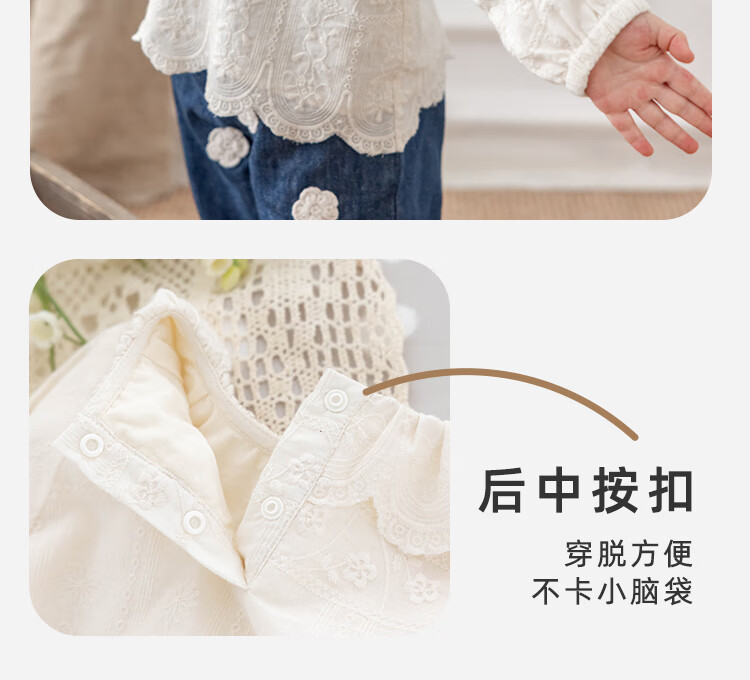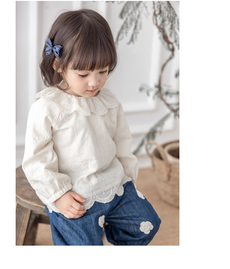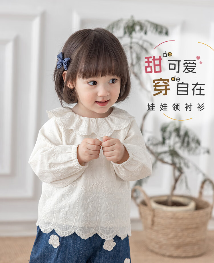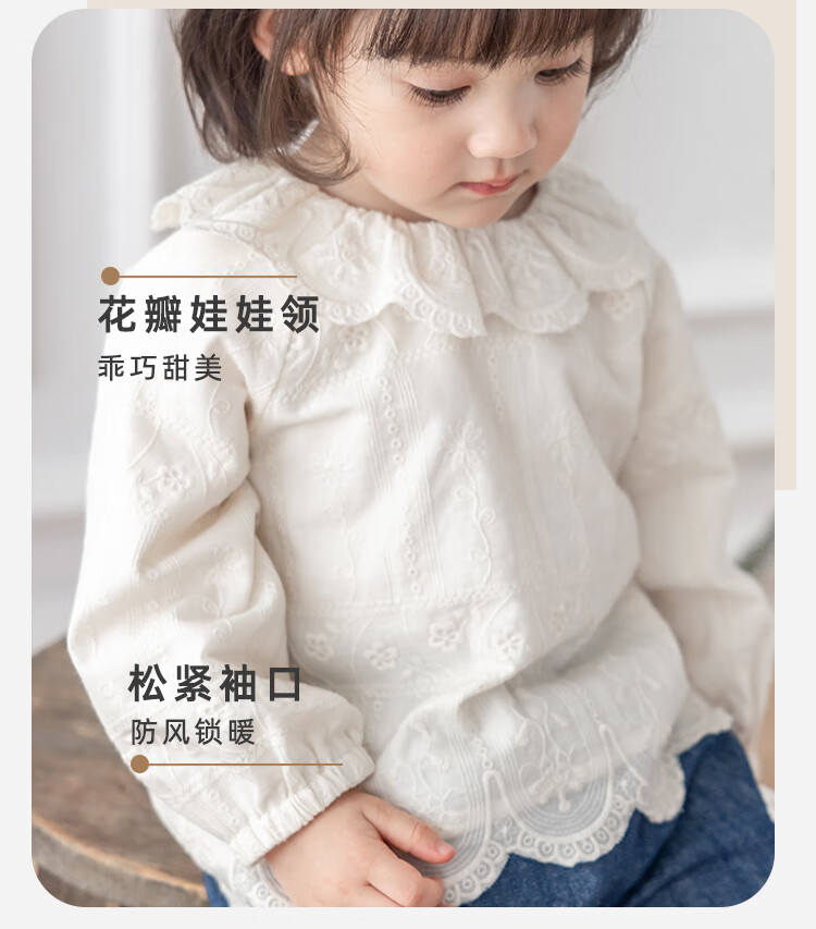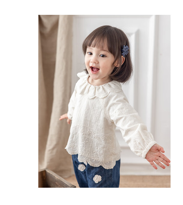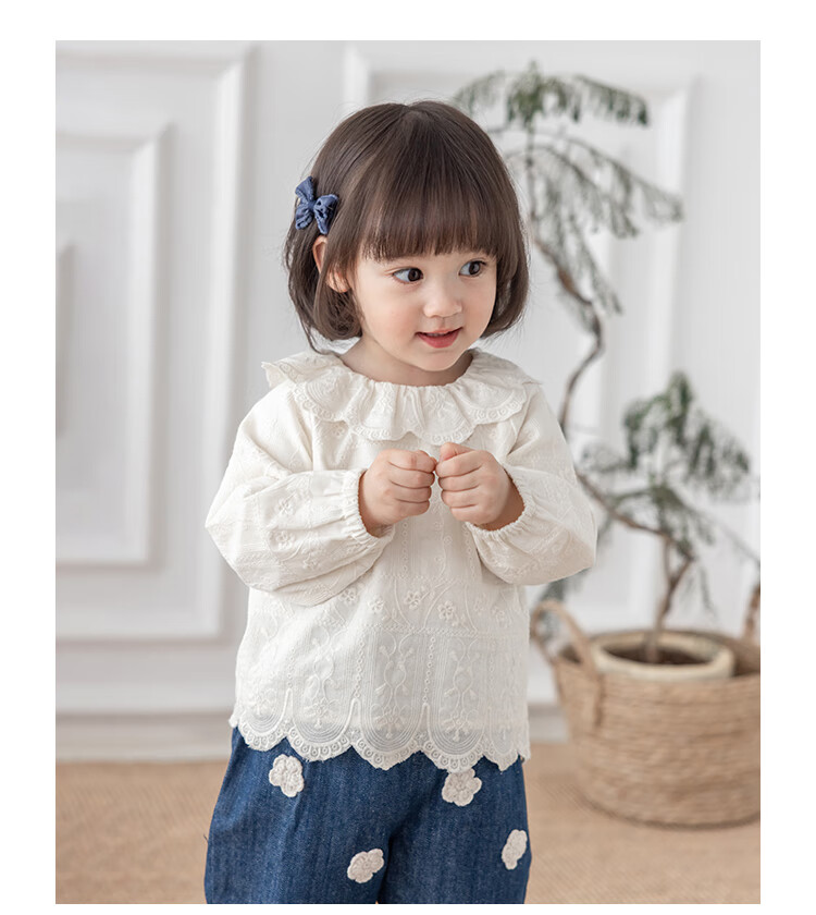 YOUGE infant lace doll collar pure cotton French embroidery shirt girls cute and comfortable top trendy beige 100 cm