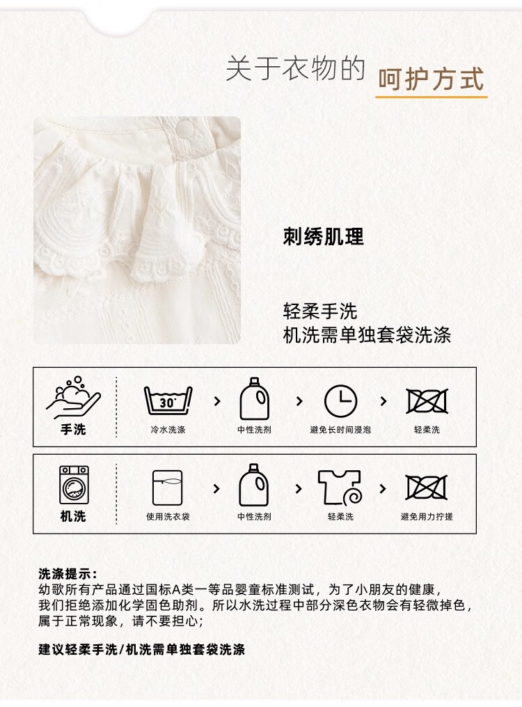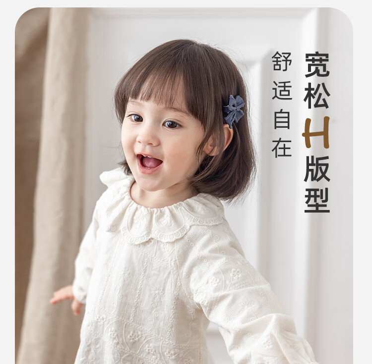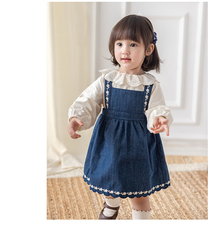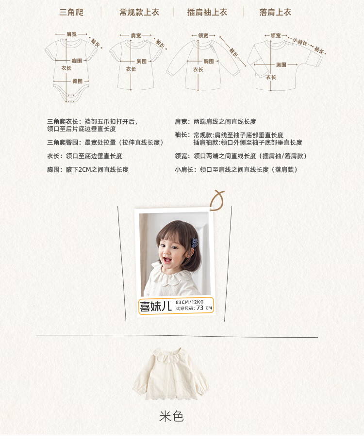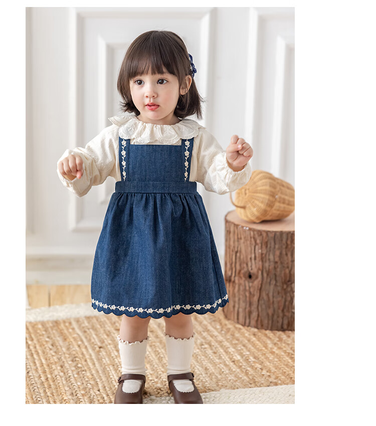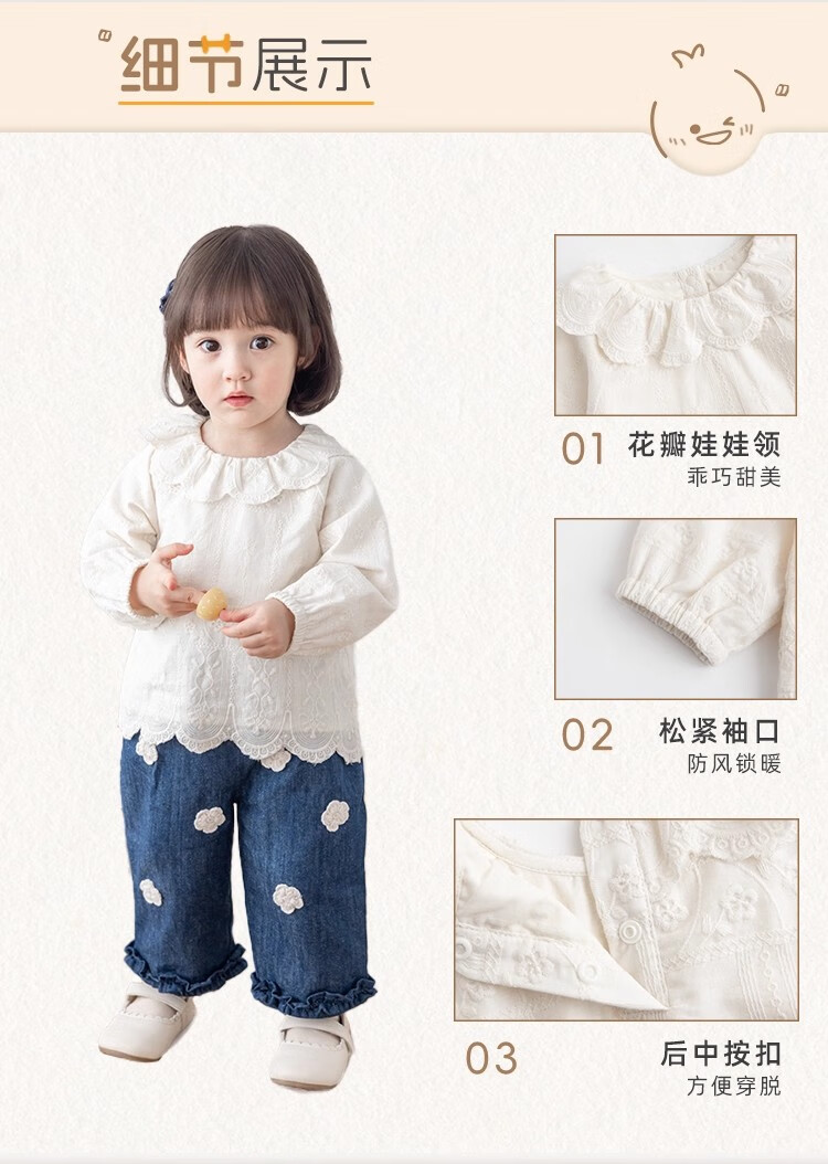 YOUGE infant lace doll collar pure cotton French embroidery shirt girls cute and comfortable top trendy beige 100 cm