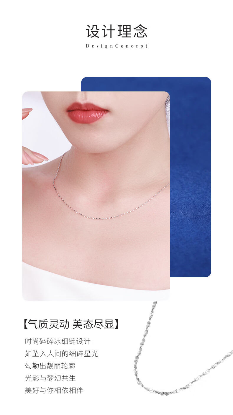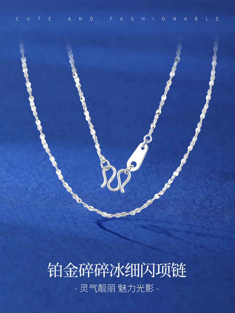CHINA GOLD PT950 Crushed Ice Platinum Necklace Clavicle Chain as a Birthday Gift for My Girlfriend and Wife Crushed Ice Necklace - About 3g