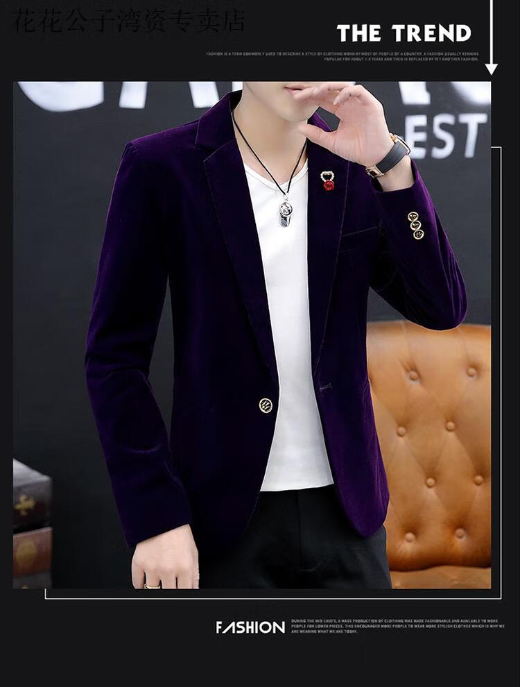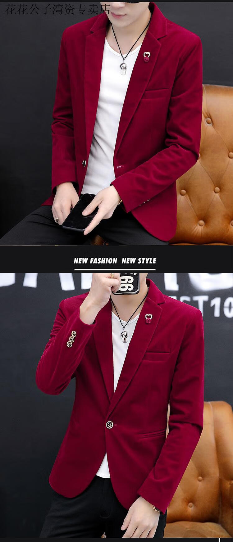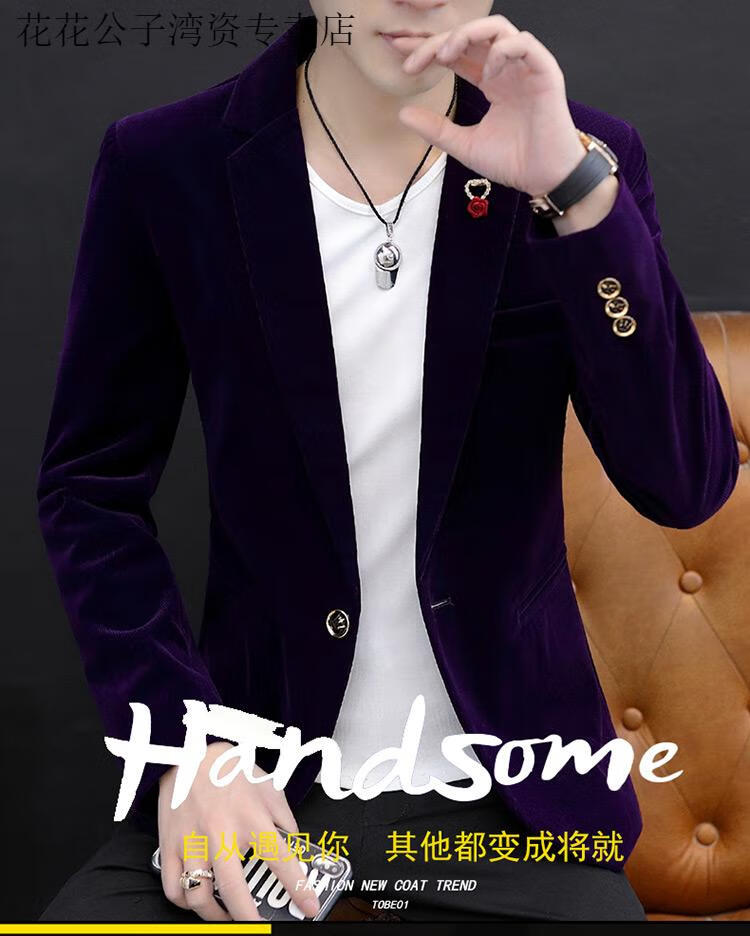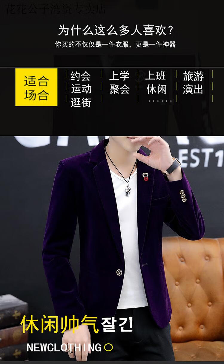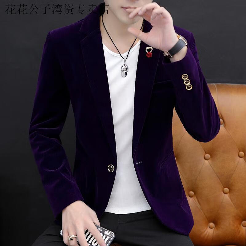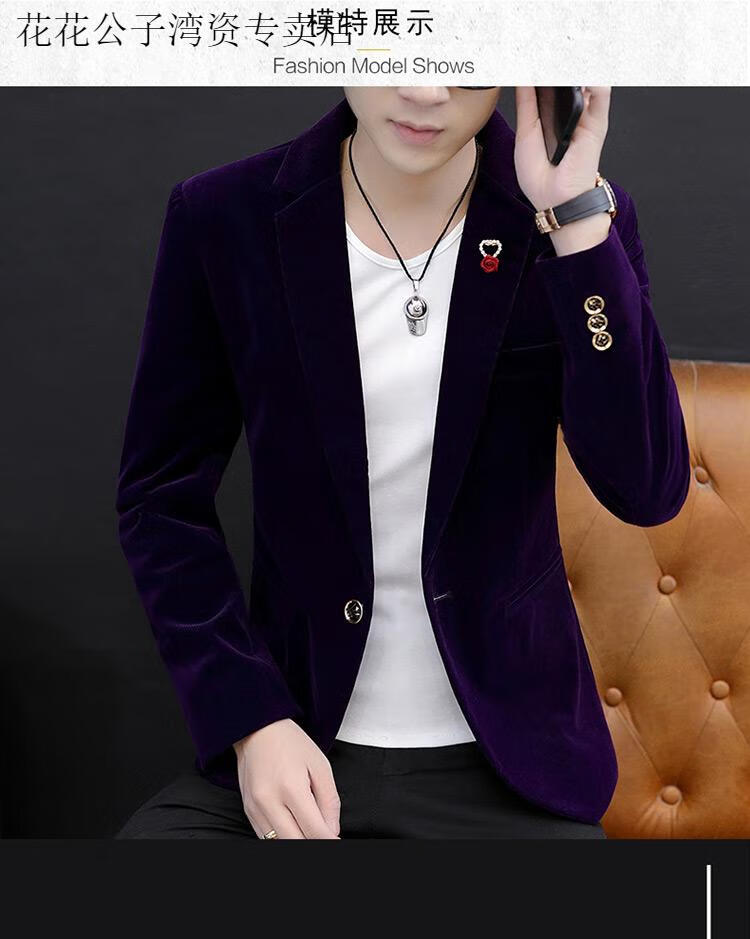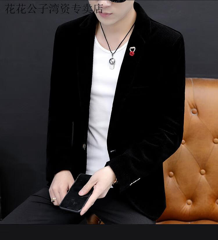 Playboy (PLAYBOY) suit men's Korean version slim fit gold velvet velvet casual small suit dress trendy men's business iron-free jacket top 905 black XL