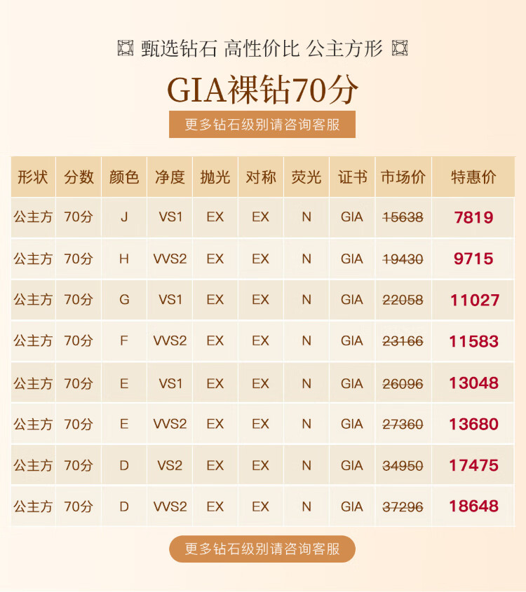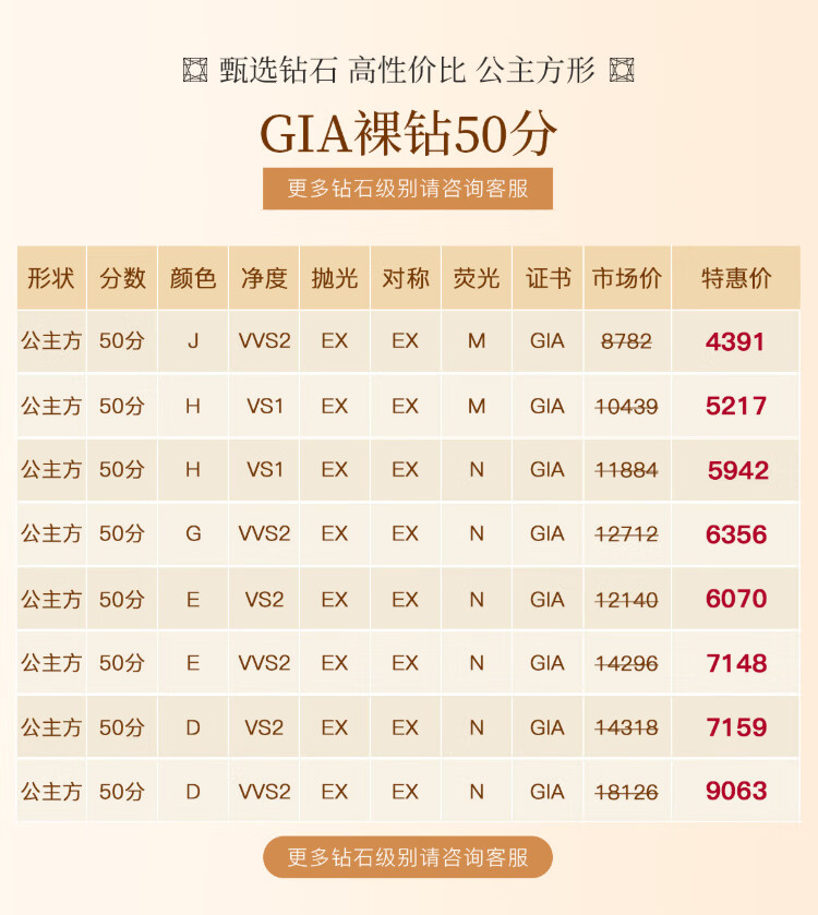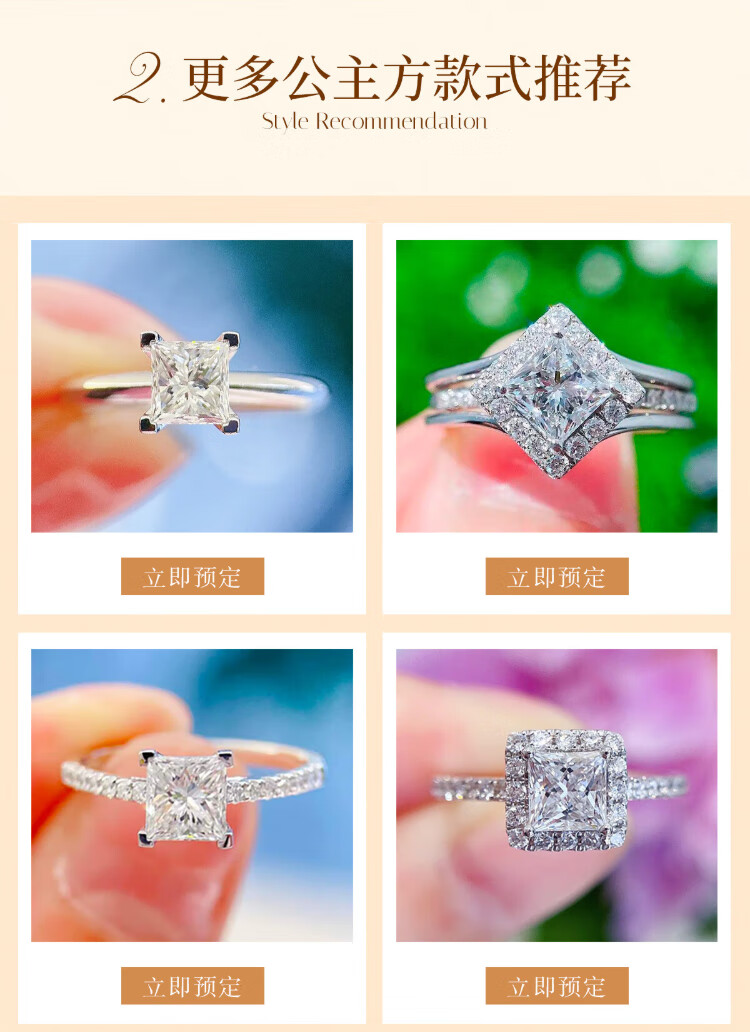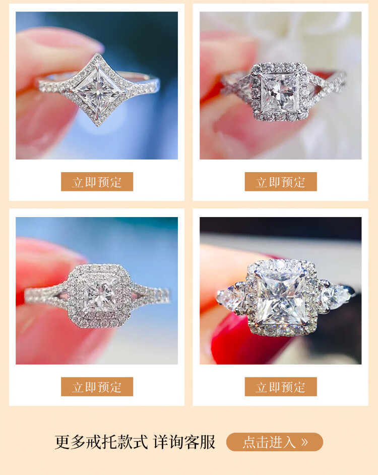 Chow Pak Fook GIA Diamond Ring Princess Cut Diamond Proposal Diamond Ring Customized Ladies Diamond Ring Diamond Ring Loose Diamond 50 Cents One Carat GIA Certificate Customized Photoshoot, Contact Customer Service for Price Inquiry